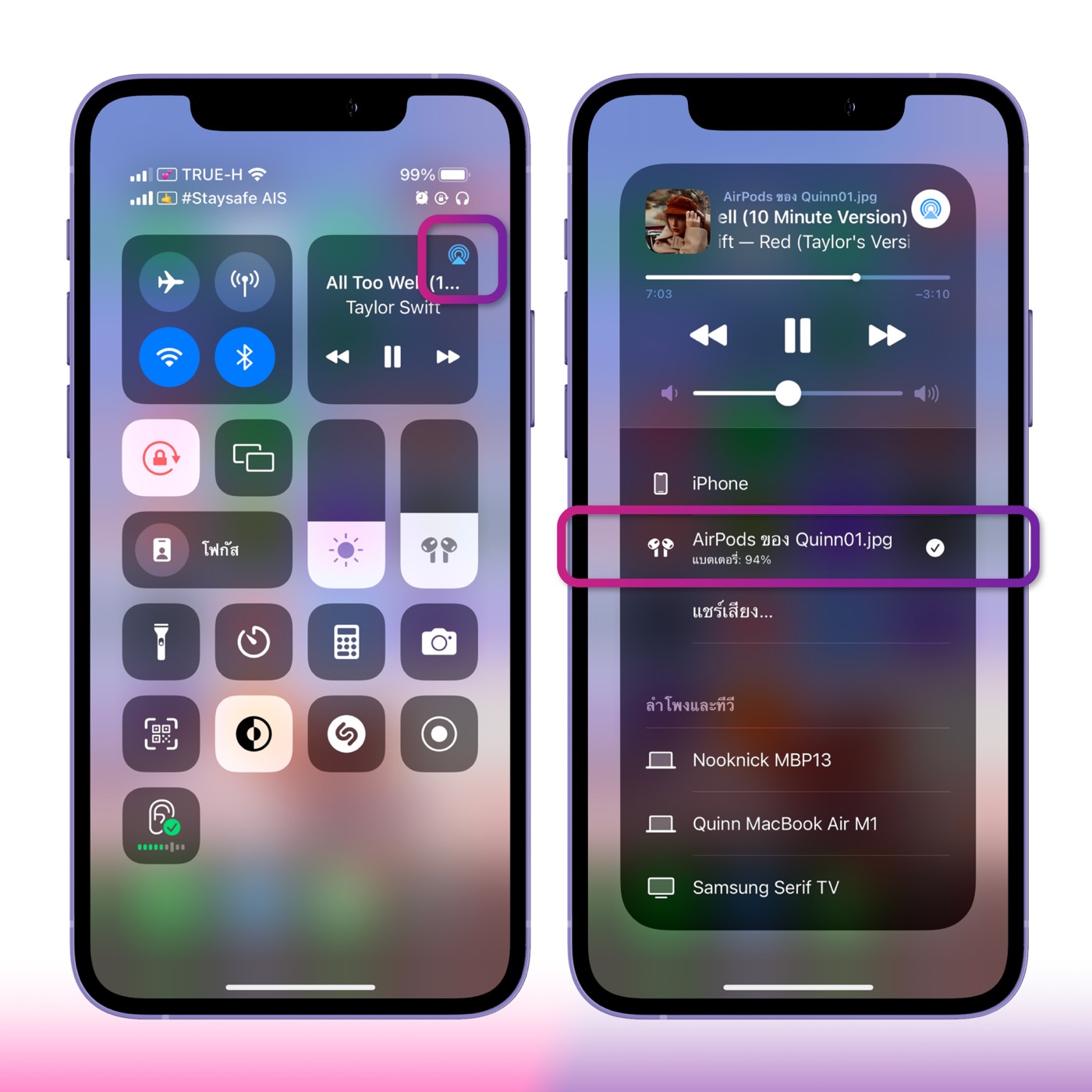 - เปิดเพลงบน iPhone แล้วแตะที่ไอคอน AirPlay