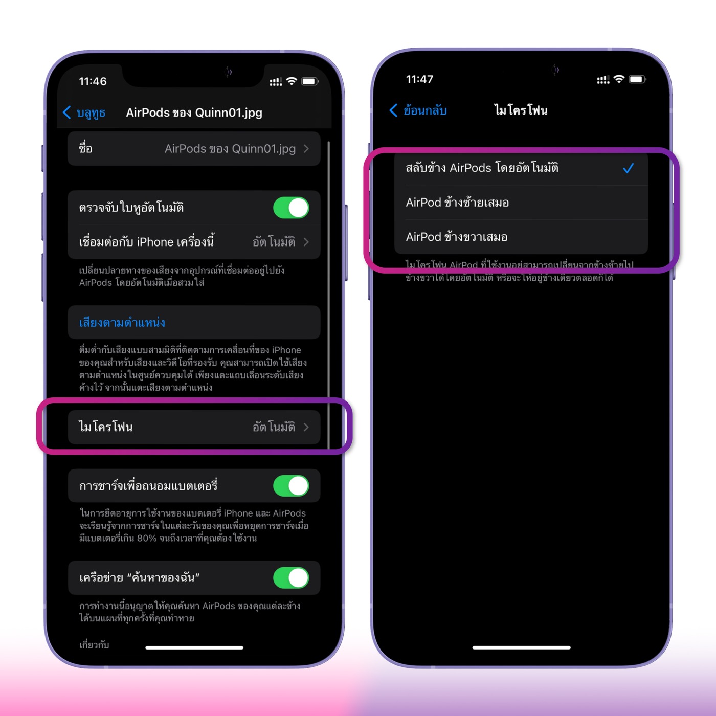 - แตะไอคอน I หลัง AirPods > แตะ ไมโครโฟน