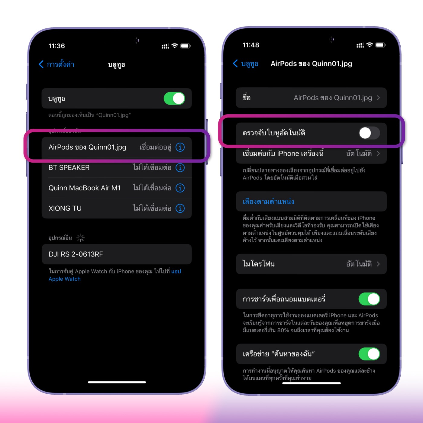 เป็นอีกฟีเจอร์ที่ควรลองปิดดู เพื่อเช็คว่า AirPods ยังทำงานได้ดีอยู่ไหม หากไม่มีการตรวจจับใบหู