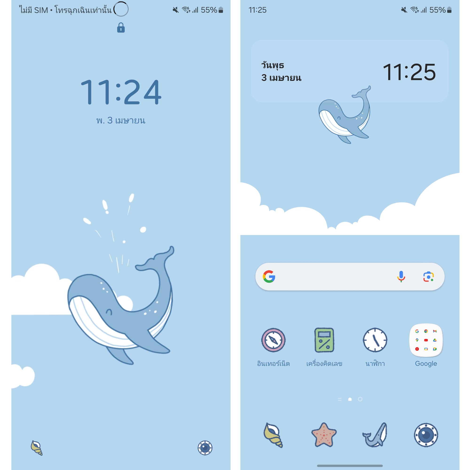 ธีมน้องวาฬน้อยน่ารัก ใครที่ชอบความมินิมอล แล้วอยากให้มีตัวการ์ตูน ทีมงานคิดว่าธีมนี้เหมาะมาก ๆ 🐳