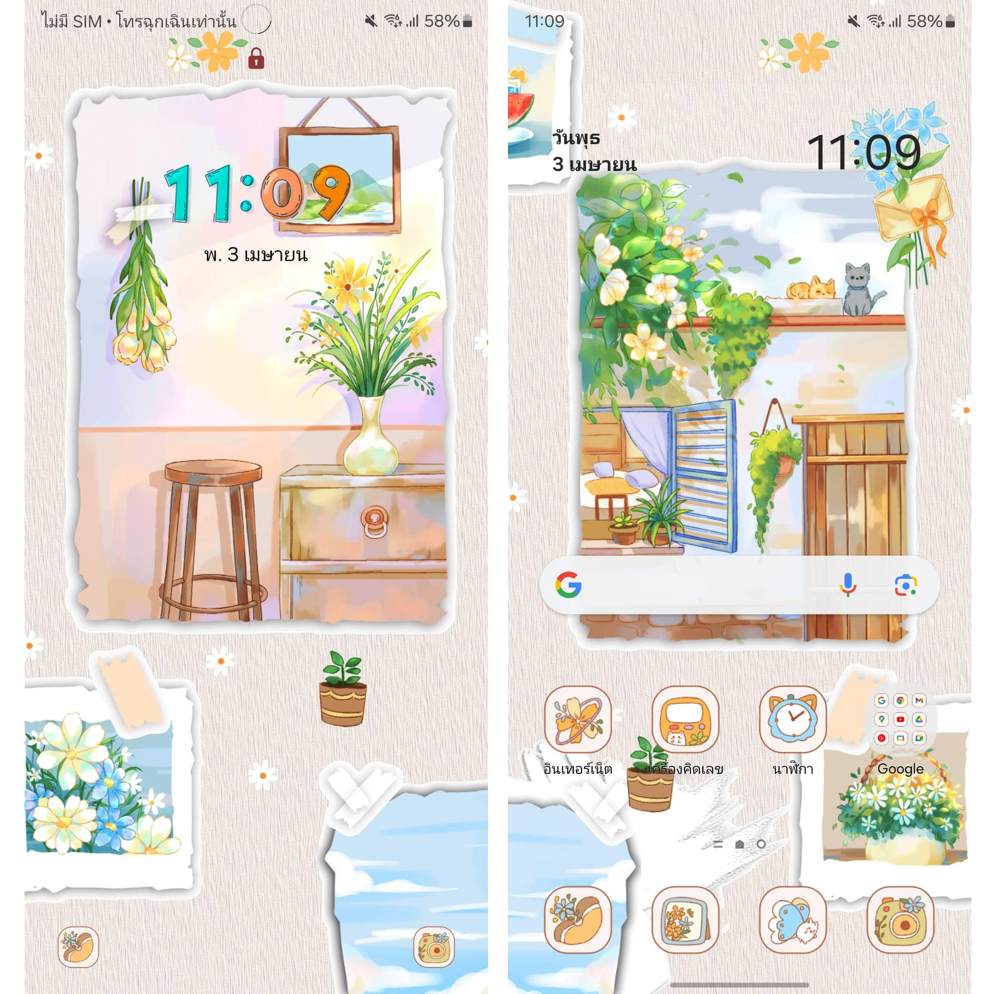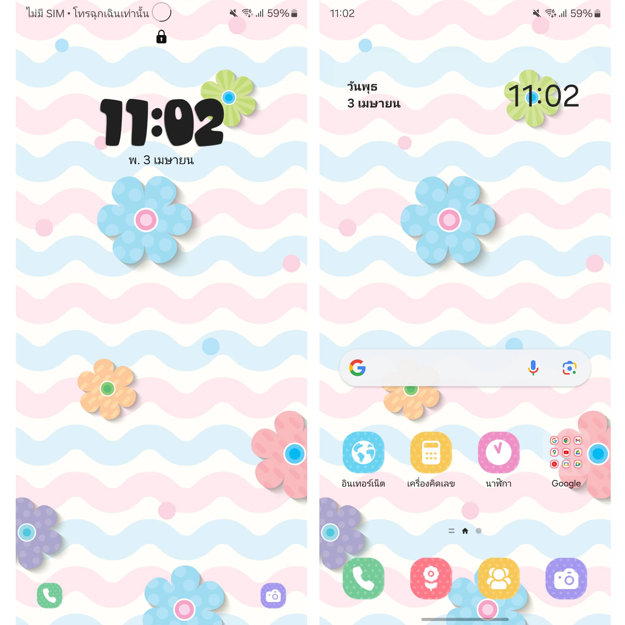 ธีมลายดอกสีสดใส พร้อมภาพน้ำทะเลสีฟ้าสด ธีมนี้ใครที่ชอบแนวสีสดใสต้องชอบอย่างแน่นอน 🌺