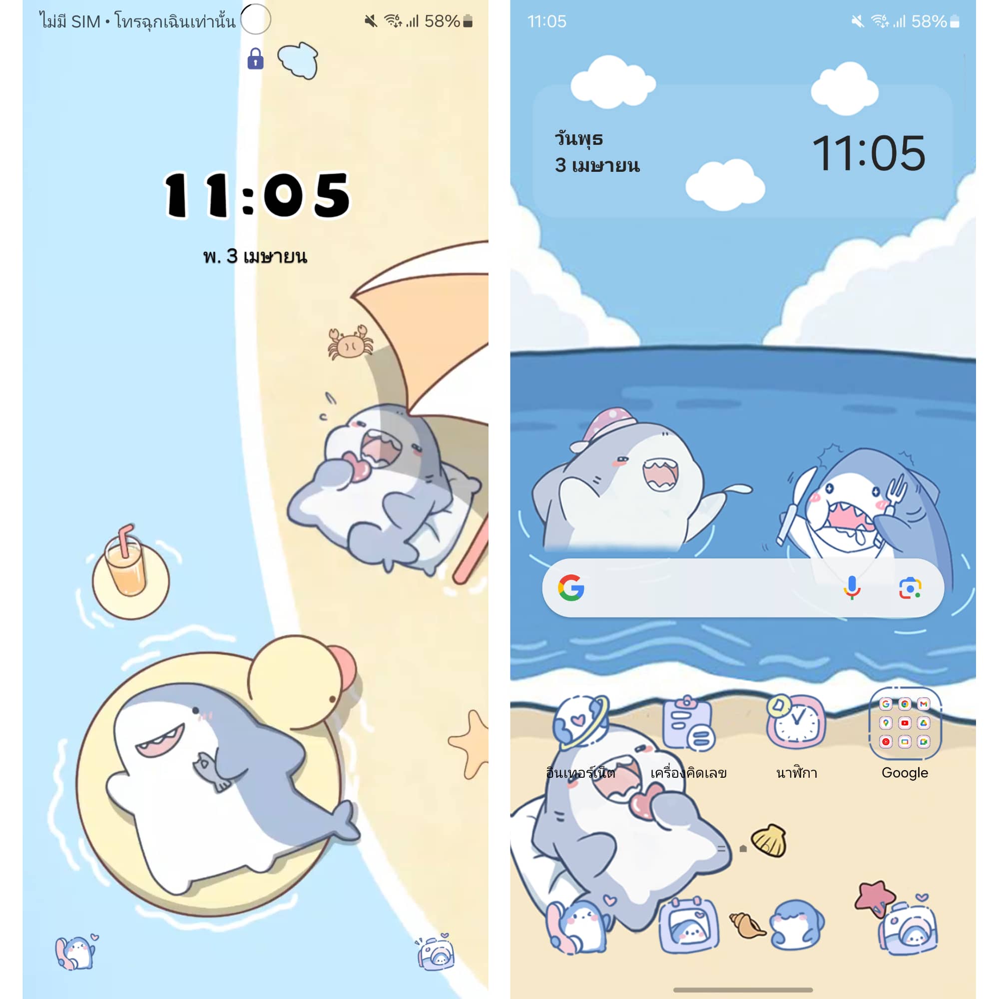 ธีมน้องฉลามสุดน่ารัก เหมาะกับคนที่ชอบตัวการ์ตูนน่ารัก ๆ ออกแนวสีพาสเทล ใครที่ชอบน้องฉลามต้องไปโหลดกันแล้ว💞