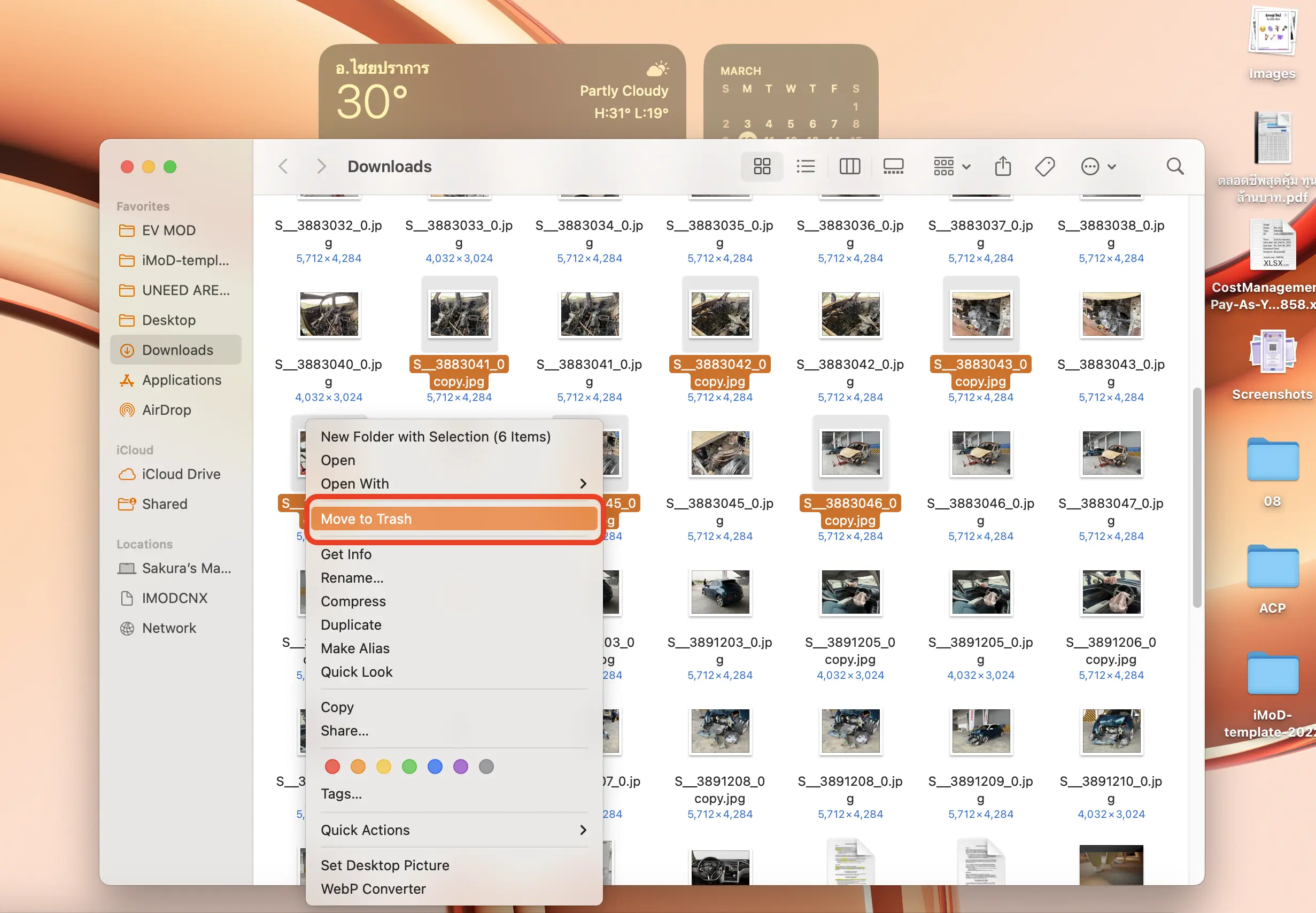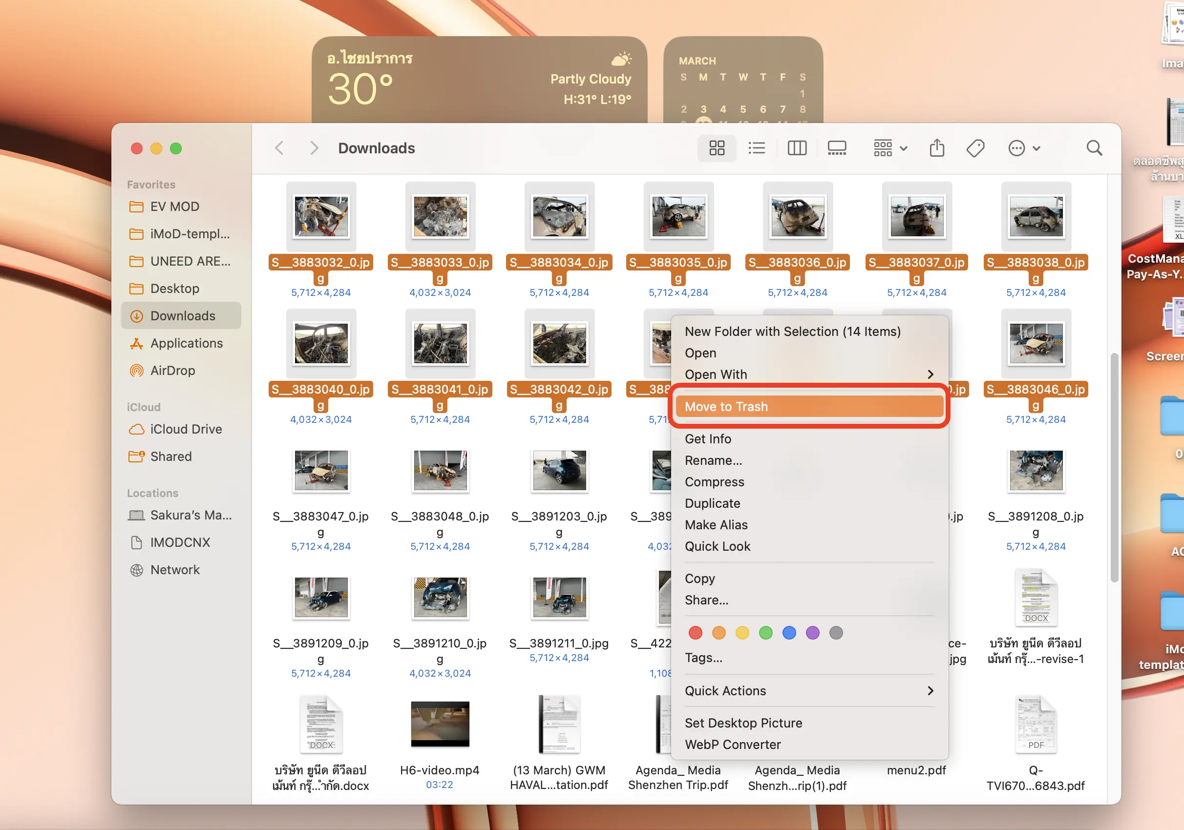 เมื่อพรีวิวดูไฟล์หรือรูปแล้ว หากต้องการลบก็คลิกขวา แล้วเลือก “Move to trash” ได้เลย
