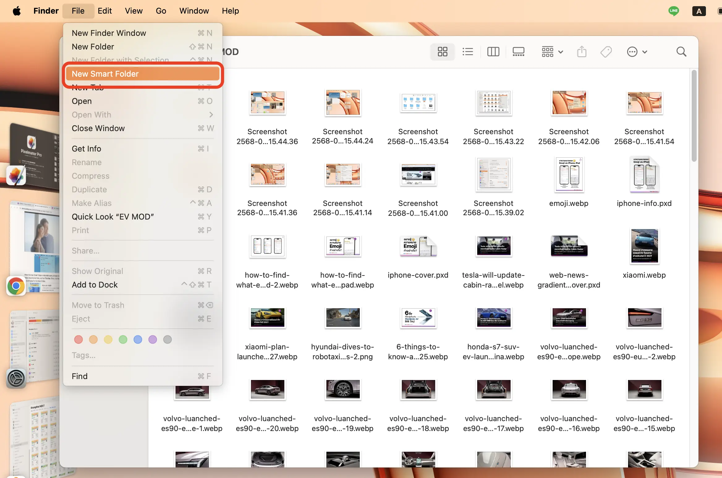 เปิดแอป Finder > คลิกเมนู File ด้านบน > เลือก New Smart Folder