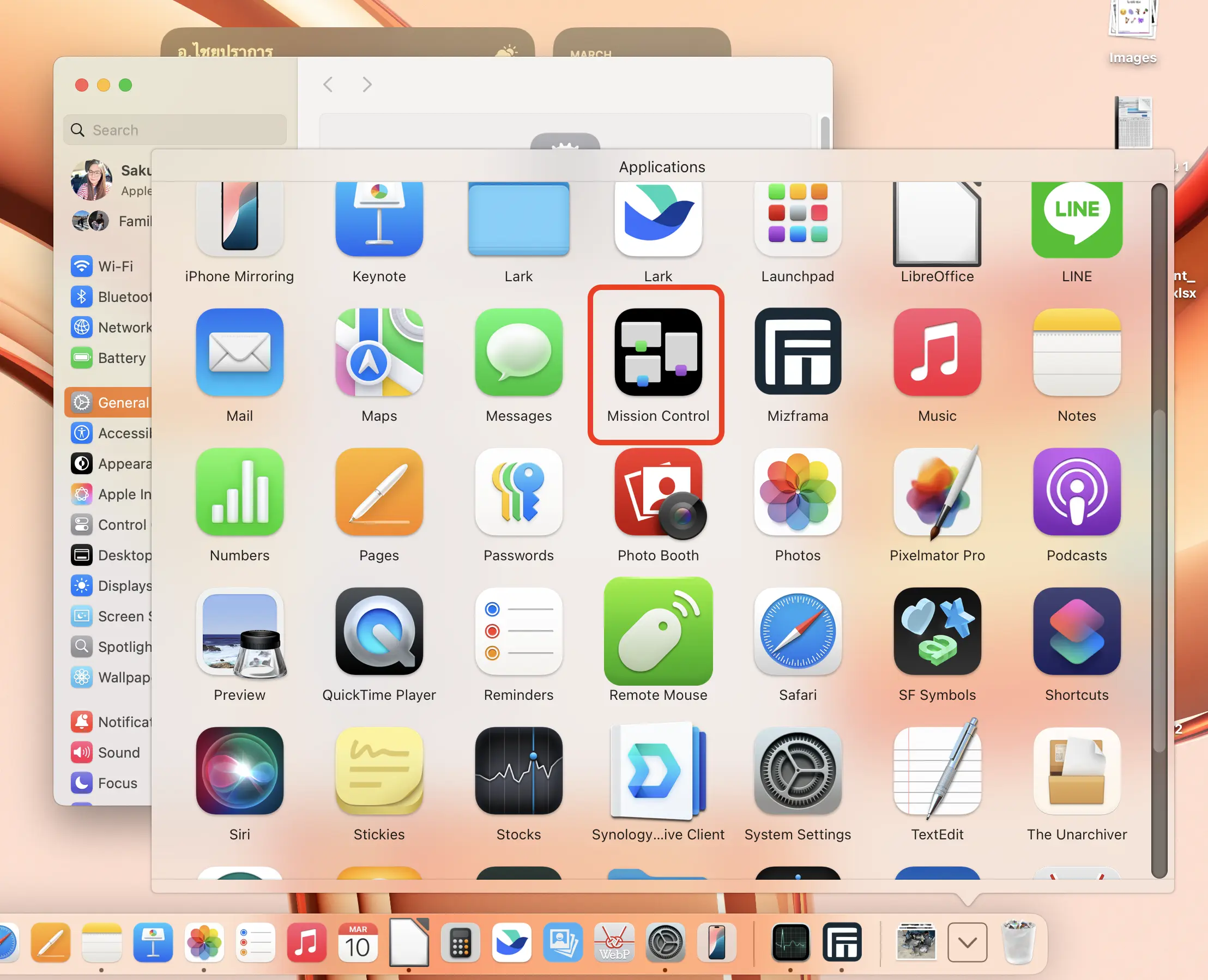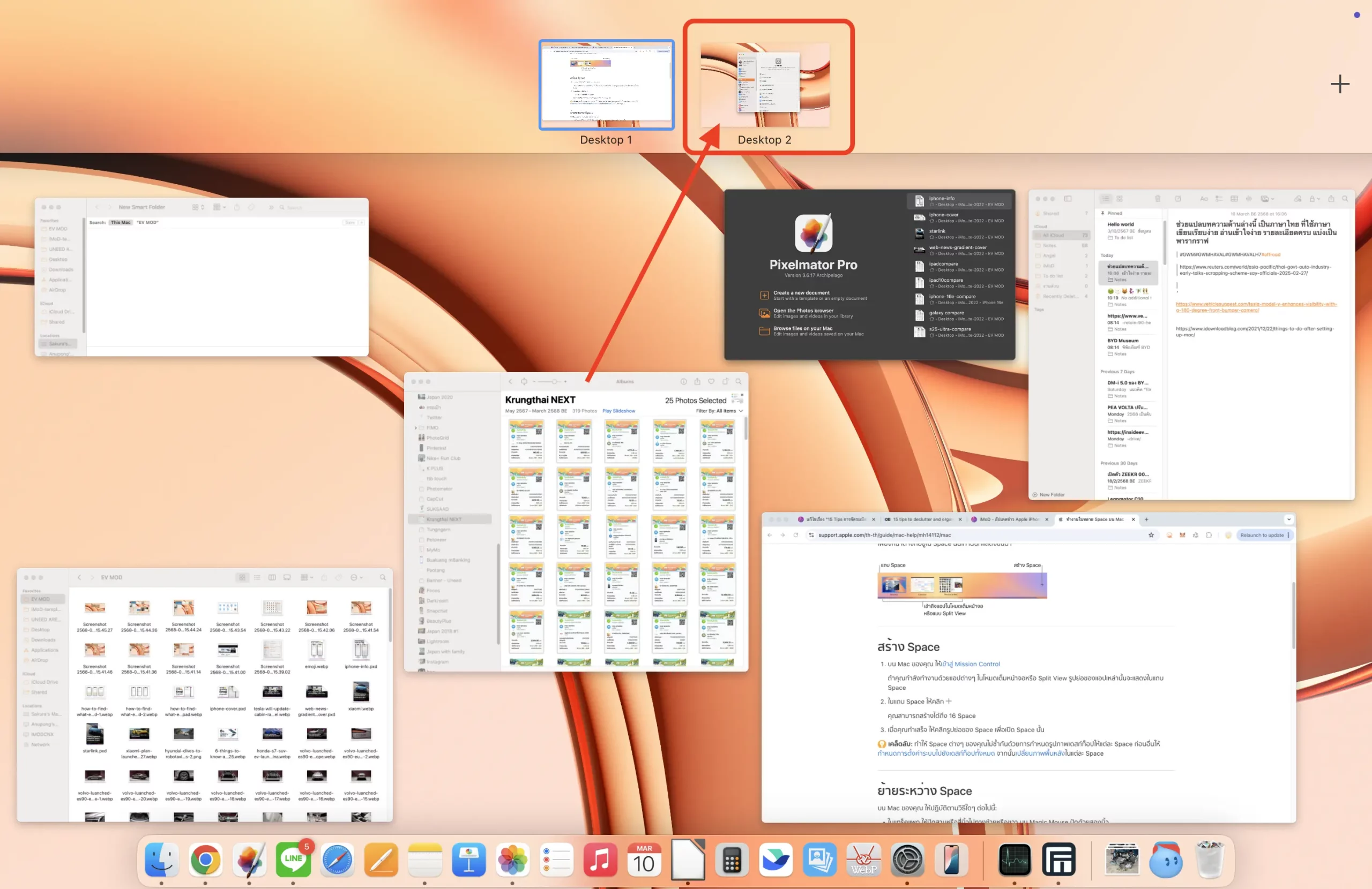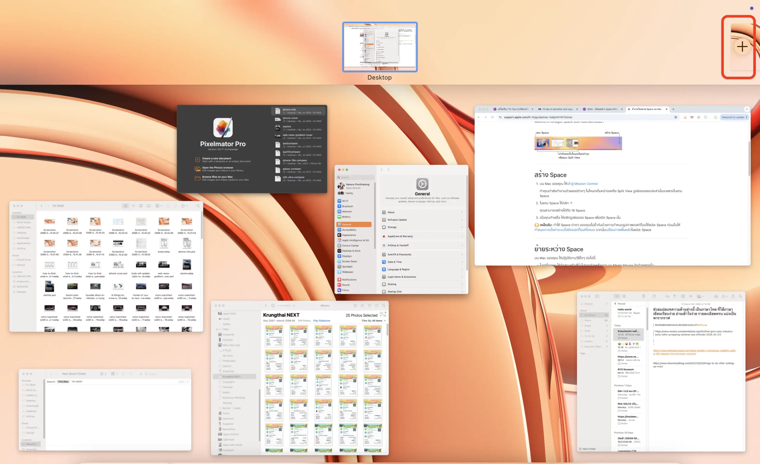 เพิ่มเดสก์ท็อปได้ที่ Applications > Mission Control