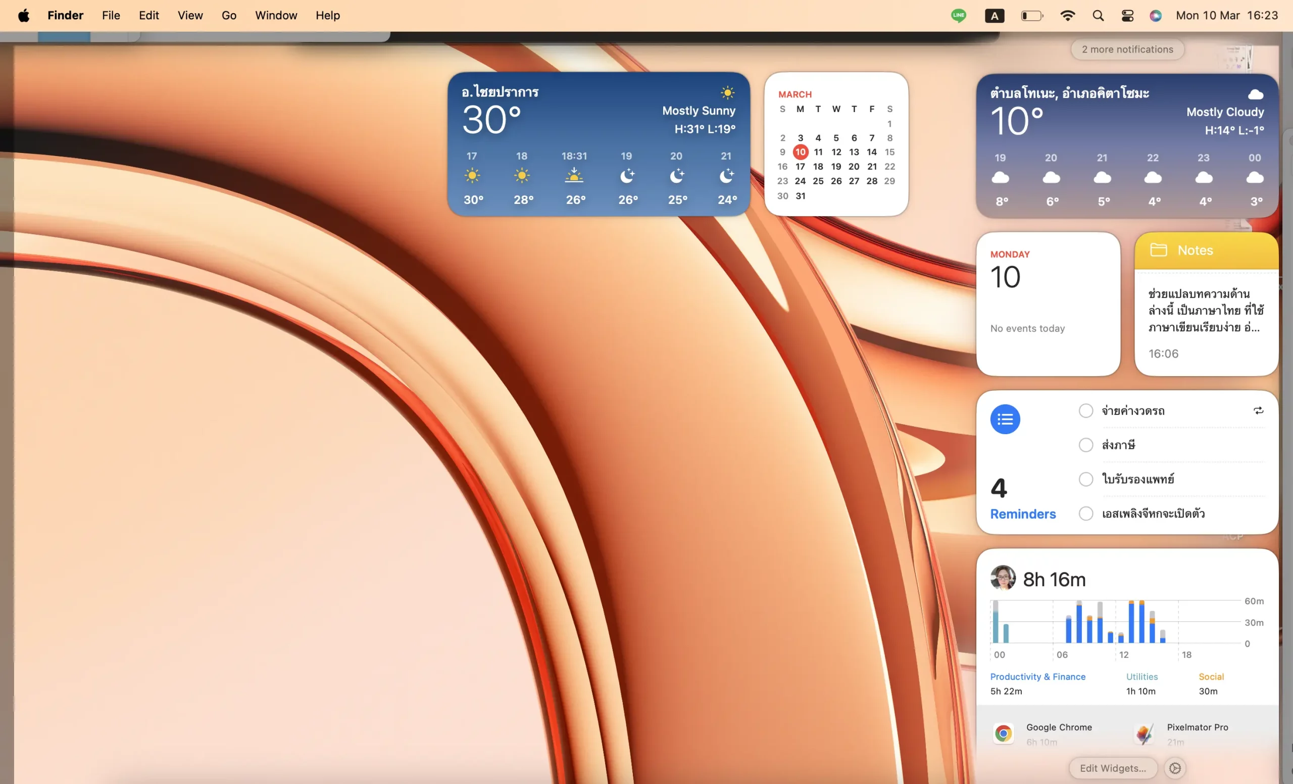 หรือถ้าหากต้องการดูวิดเจ็ตเป็นบางเวลาโดยไม่ต้องการให้รกหน้าจอ ก็สามารถเพิ่มวิดเจ็ตให้แสดงในศูนย์การแจ้งเตือนได้ (Notification Center)