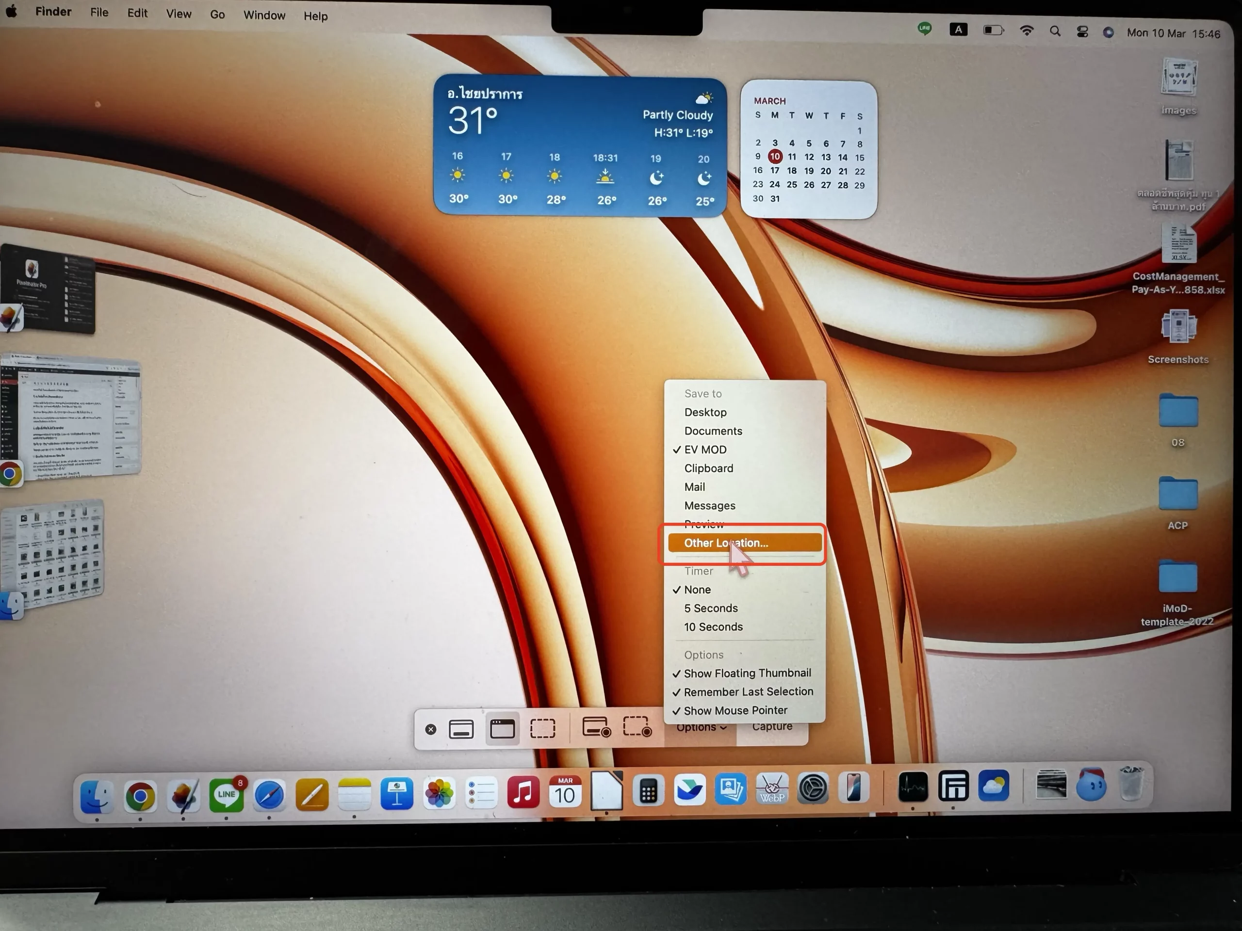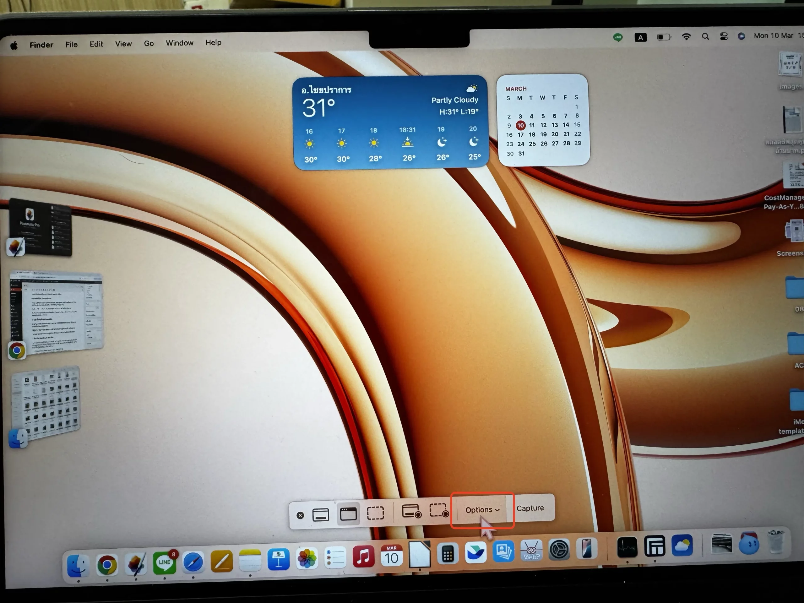 วิธีแก้ไขง่าย ๆ ก็คือ การเปลี่ยนตำแหน่งการบันทึกไฟล์ภาพถ่ายหน้าจอไปยังโฟลเดอร์อื่น ๆ ที่เราต้องการ โดยกดปุ่ม Command + Shift + 5 บนคีย์บอร์ด > เลือก Option