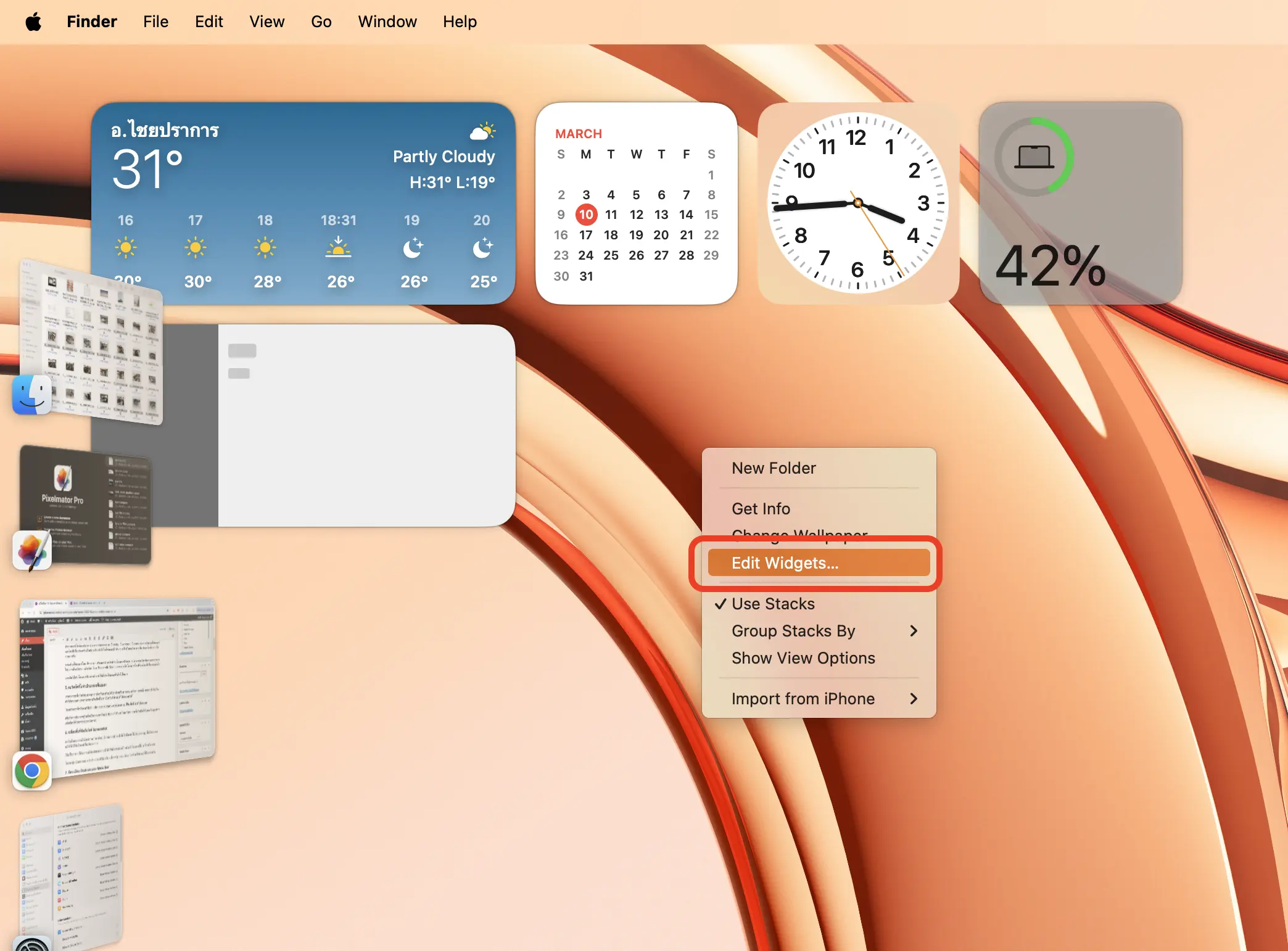 โดยคลิกขวาที่หน้าเดสก์ท็อป > เลือก Edit Widge