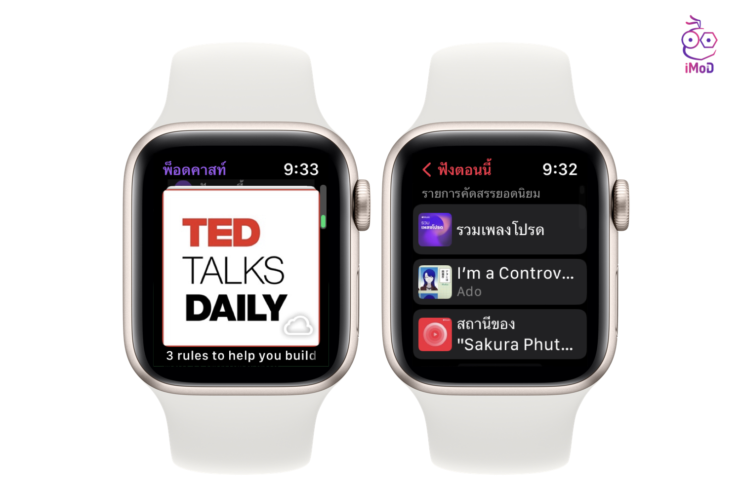 ถ้าหากเราดาวน์โหลดเพลง พ็อดคาสต์ หรือหนังสือเสียงมาเก็บไว้บน Apple Watch เราก็สามารถฟังรายการมีเดียเหล่านี้แบบออฟไลน์ได้ ถึงแม้ว่าจะไม่ได้เชื่อมต่อ iPhone หรือไม่มีอินเทอร์เน็ต