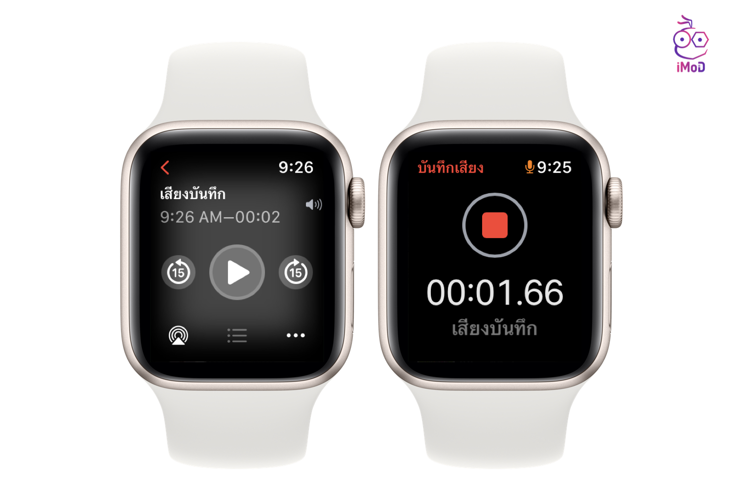 เราสามารถใช้งานแอปบันทึกเสียง (Voice Memo) บน Apple Watch ได้โดยไม่จำเป็นต้องเชื่อมต่อข้อมูลกับ iPhone เราสามารถบันทึกเสียงและเล่นเสียงที่บันทึกได้เลยบน Apple Watch