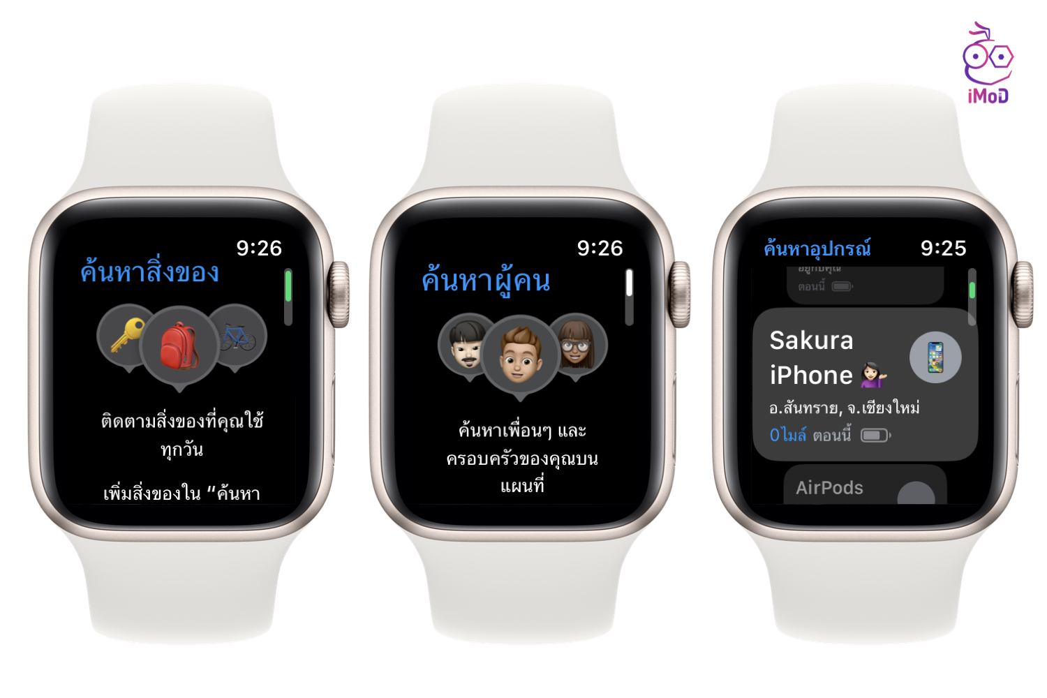 เราสามารถค้นหาอุปกรณ์ของเราหรือของคนในครอบครัวผ่านแอป Find My ได้บน Apple Watch หรือจะติดตามตำแหน่งบุคคลก็ได้