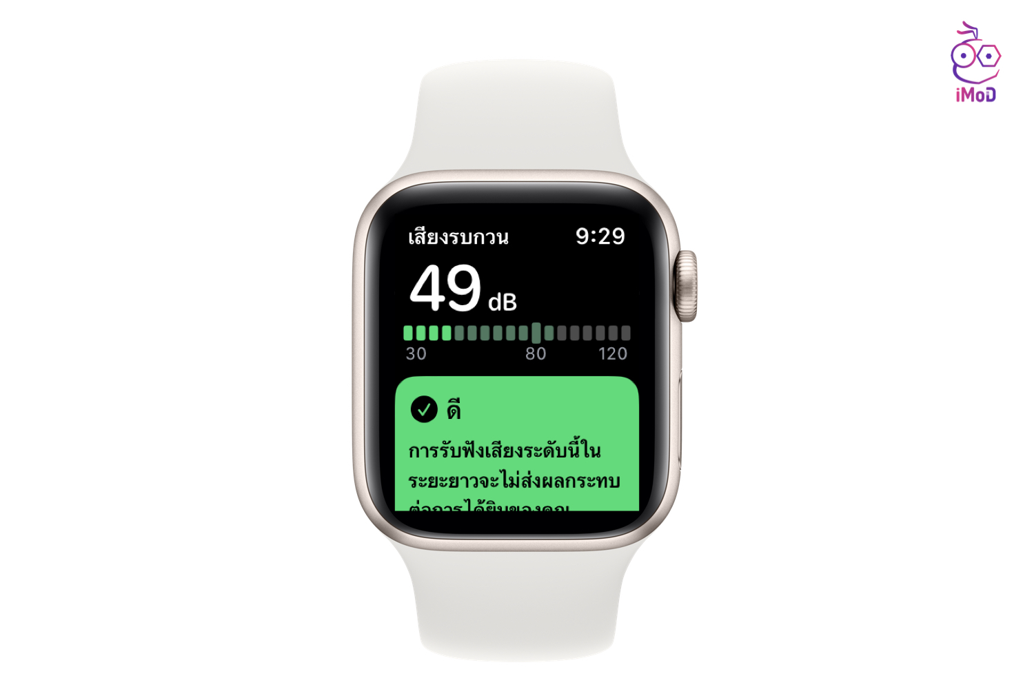 Apple Watch มีแอปเสียงรบกวน (Noise) ที่สามารถติดตามระดับเสียงรอบข้างได้แบบเรียลไทม์ว่ามีความดังกี่เดซิเบล และส่งผลต่อสุขภาพการได้ยินหรือไม่