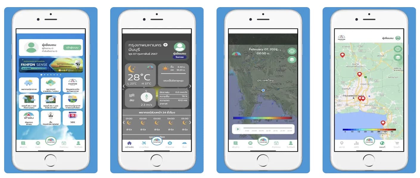 แอปนี้แสดงข้อมูลสภาพอากาศแบบเรียลไทม์ แม่นยำ แจ้งเตือนฝนตกได้ พยากรณ์อากาศล่วงหน้า 7 วัน มีเครื่องมือช่วยเหลือสำหรับการจัดการพื้นที่ ได้แก่ การรังวัดเพื่อหาพิกัด ความยาว และพื้นที่ การคำนวณปริมาตรดินสำหรับขุดบ่อและถมดิน และการหาขอบเขตพื้นที่ภายในระยะรัศมีที่ต้องการ