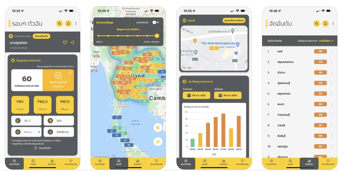 ตรวจสอบค่าฝุ่น PM 2.5 คุณภาพอากาศในบริเวณใกล้เคียง และสามารถดูทั้งประเทศได้
