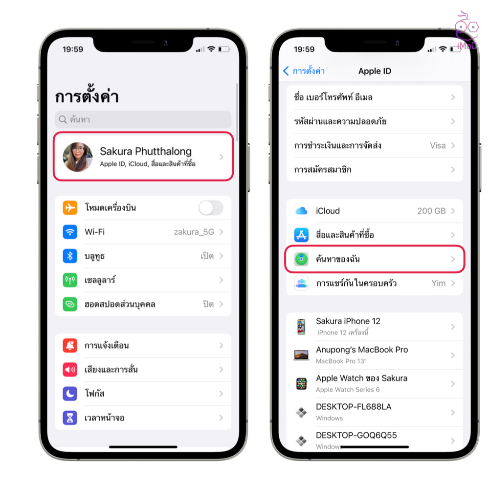 แต่การจะค้นหา iPhone ขณะออฟไลน์ได้นั้น เราจะต้องเปิดใช้งานการค้นหาของฉันก่อน ไปที่ การตั้งค่า (Settings) > Apple ID > ค้นหาของฉัน (Find My)