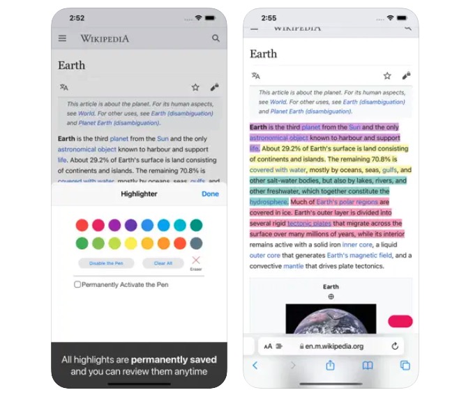 Highlighter for Safari เป็นส่วนขยายที่ช่วยให้ผู้ใช้ทำไฮไลท์ข้อความได้ โดยมีหลายสีให้เลือก และสามารถเพิ่มบันทึกย่อ หรือใส่คำอธิบายได้โดยตรงบนบทความที่เปิดบน Safari เหมาะกับนักเรียน นักศึกษา และคนทำงานที่ต้องโน้ตจดบันทึกมาก ๆ