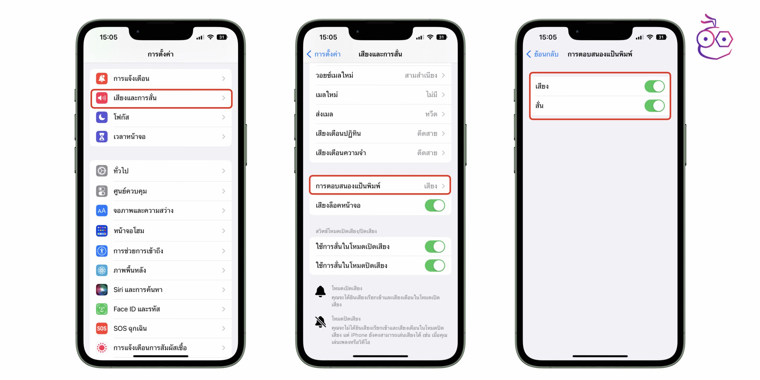 สำหรับใครที่ต้องการการสั่นไหวขณะพิมพ์ข้อความบน iPhone, iOS 16 สามารถเปิดการสั่นของแป้นพิมพ์ได้ โดยเข้าไปที่ การตั้งค่า > เสียงและการสั่น > การตอบสนองแป้นพิมพ์ > เลือกเปิดเสียง / สั่น