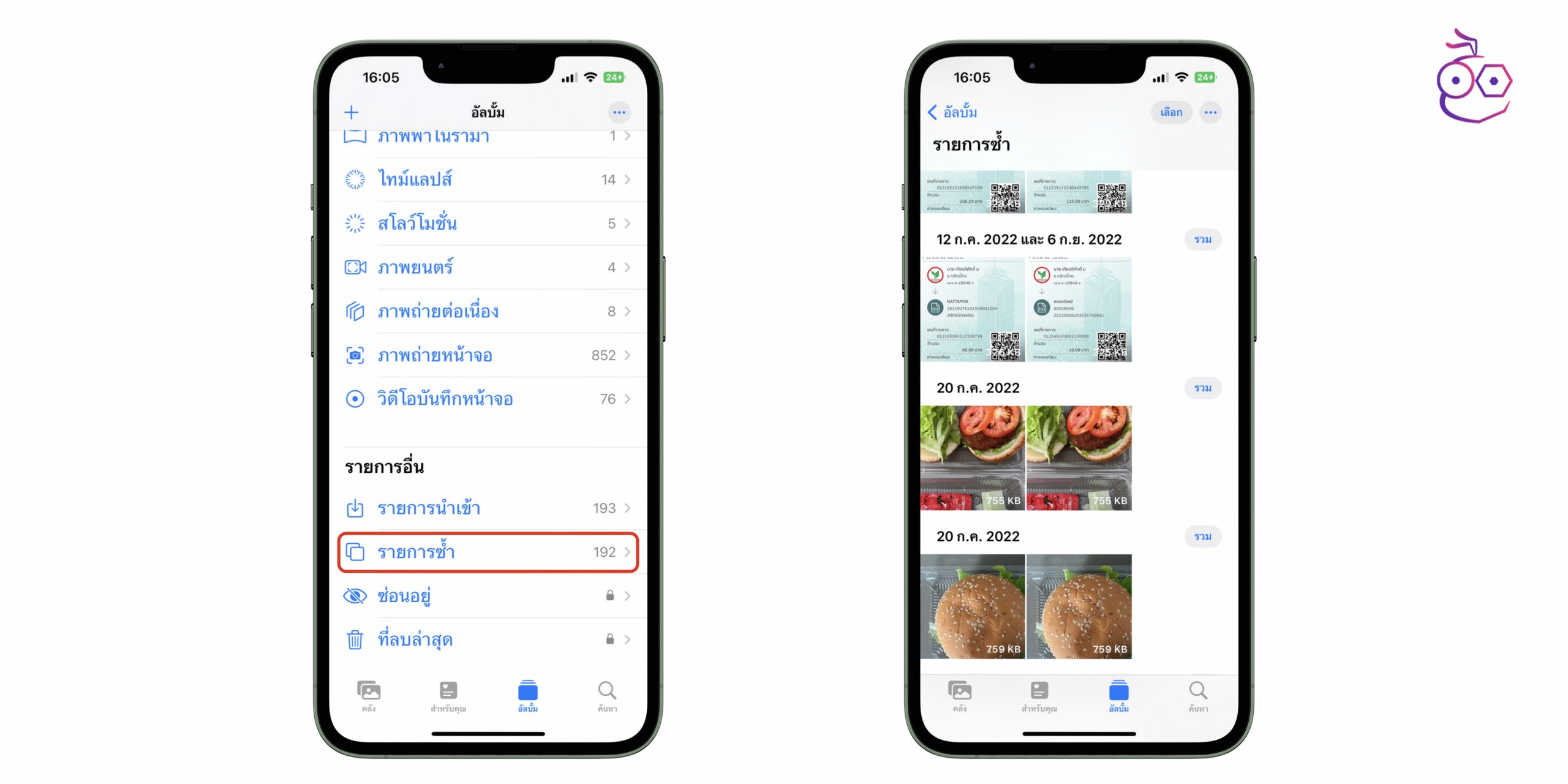 อัลบั้มรายการซ้ำ เป็นอัลบั้มใหม่ที่เพิ่มเข้ามาใน iOS 16 โดยมีตัวเลือกให้เรา “รวม” ภาพที่ซ้ำกันได้