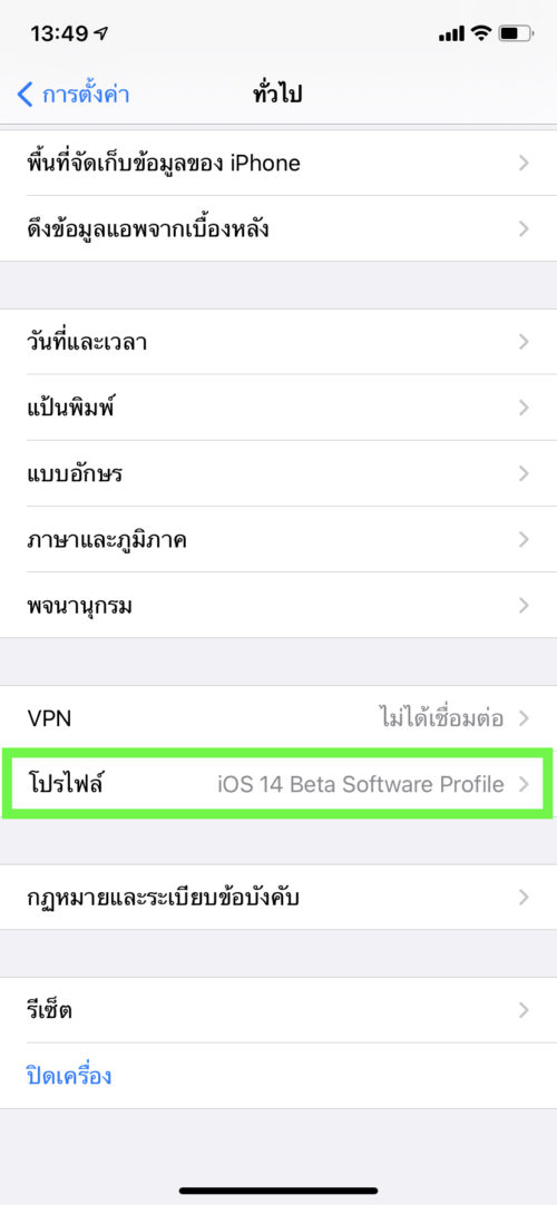 *หากไม่เห็นตัวเลือกนี้ในการตั้งค่าก็ไม่ต้องตกใจ เพราะนั่นแสดงว่าอุปกรณ์ของเราไม่ได้ติดตั้งโปรไฟล์ใด ๆ