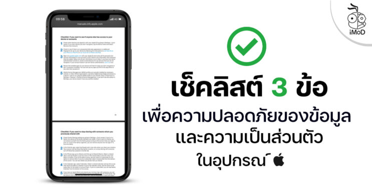 ในคู่มือการปกป้องข้อมูลและความเป็นส่วนตัว Apple ได้แชร์ 3 เช็คลิสต์ที่จะช่วยเพิ่มความปลอดภัยและการป้องกันการถูกนำข้อมูลส่วนตัวไปใช้โดยบุคคลที่ 3