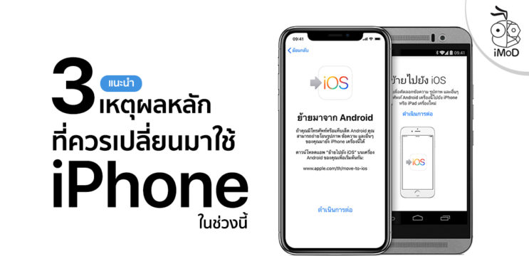 บทความนี้จะเป็นการแนะนำเหตุผลสำหรับผู้ใช้สมาร์ตโฟน Android ที่กำลังตัดสินใจว่าจะย้ายมาใช้ iPhone บนระบบปฏบัติการ iOS ในช่วงนี้ ทีมงานมี 3 เหตุผลหลัก ๆ ที่ช่วยให้การตัดสินใจมากแนะนำให้ชมกันค่ะ