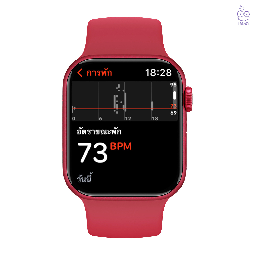 อัตราการพัก (Resting Rate) จะแสดงอัตราการเต้นของหัวใจขณะที่เราพักหรืออยู่เฉย ๆ รวมถึงขณะนอนหลับ โดยเฉลี่ยแล้วค่าของอัตราการพักจะอยู่ที่ประมาณ 60 – 80 bpm