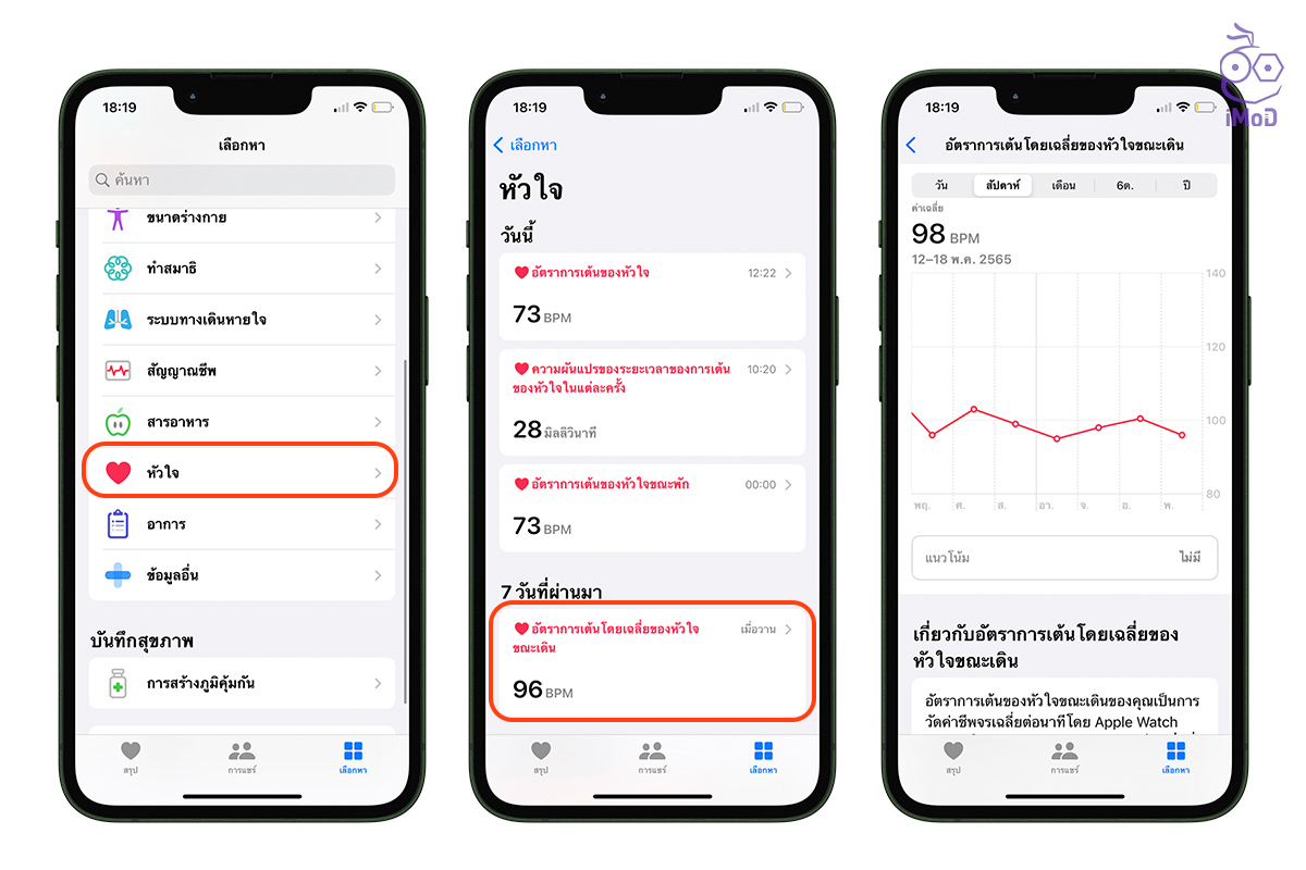 2. เช็คประวัติอัตราการเต้นของหัวใจบน iPhone