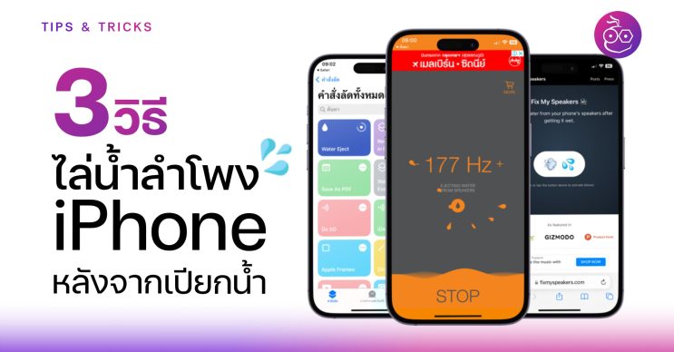 ถึงแม้ว่า iPhone รุ่นใหม่ ๆ จะมีคุณสมบัติทนน้ำ แต่เมื่อเครื่องโดนน้ำแล้ว น้ำอาจจะไปปิดเสียงลำโพงอยู่และอาจจะซึมเข้าไปด้านในได้ หากไม่มีการไล่น้ำออกจากลำโพง เรามาชมวิธีไล่น้ำง่าย ๆ 3 วิธีด้วยกัน