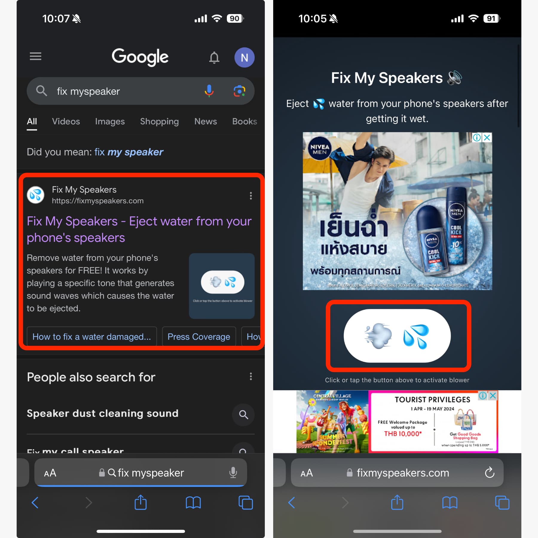 ทุกวิธีด้านล่างนี้ใช้เสียงความถี่เฉพาะ เพื่อไล่น้ำออกจากช่องลำโพงของ iPhone หลักการทำงานคล้ายกับฟีเจอร์ไล่น้ำบน Apple Watch เลือกใช้วิธีใดก็ได้ตามสะดวก