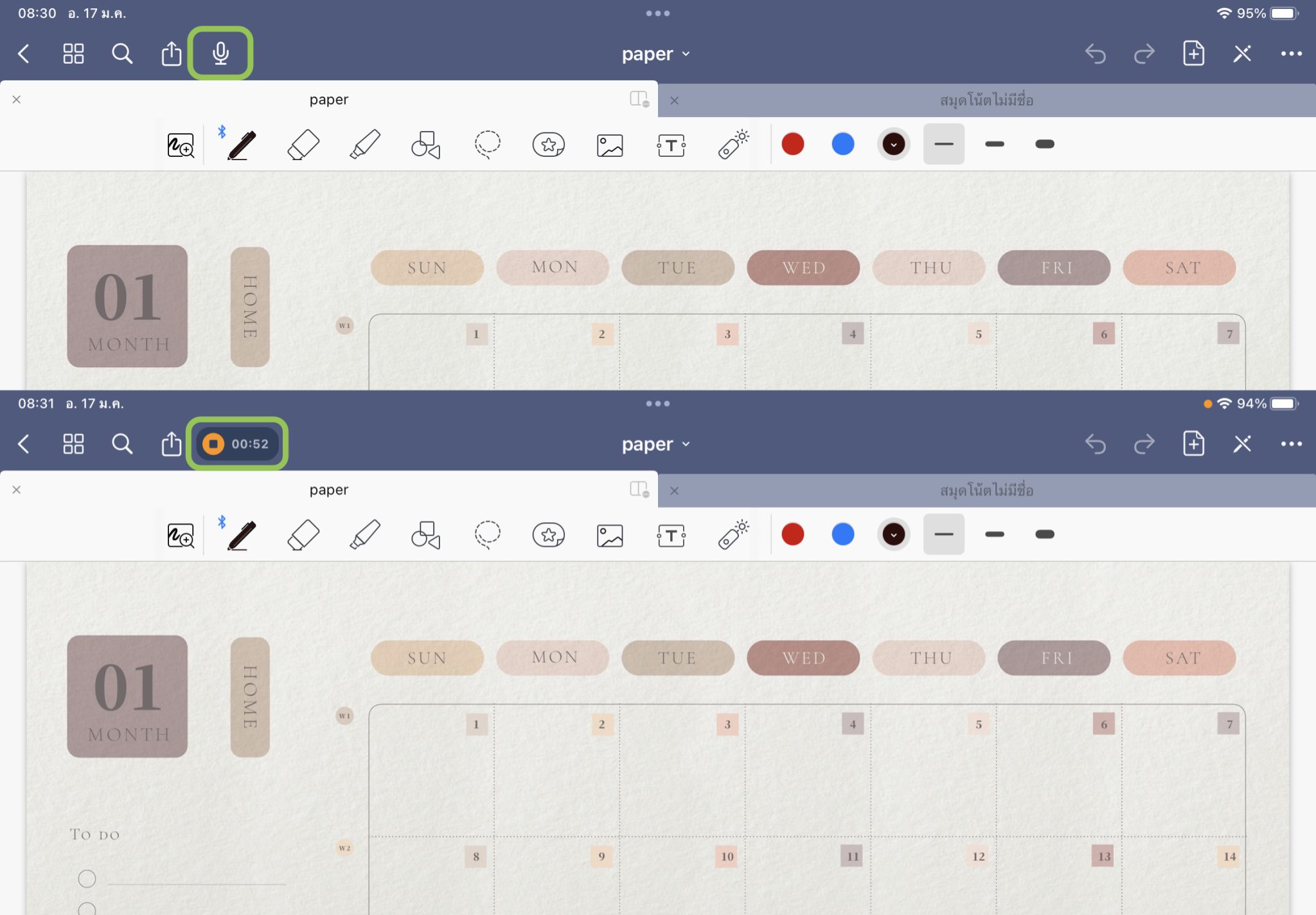 ฟีเจอร์นี้ GoodNotes อัปเดตให้สามารถกดอัดเสียงขณะที่กำลังจดโน้ตได้แล้ว และยังสามารถกดอัดเสียงซ้ำต่อได้เลย โดยในแอปจะมีจุดมาร์คสำหรับการอัดเสียงและแยกเป็นคลิปเสียงในแต่ละรอบให้ด้วย