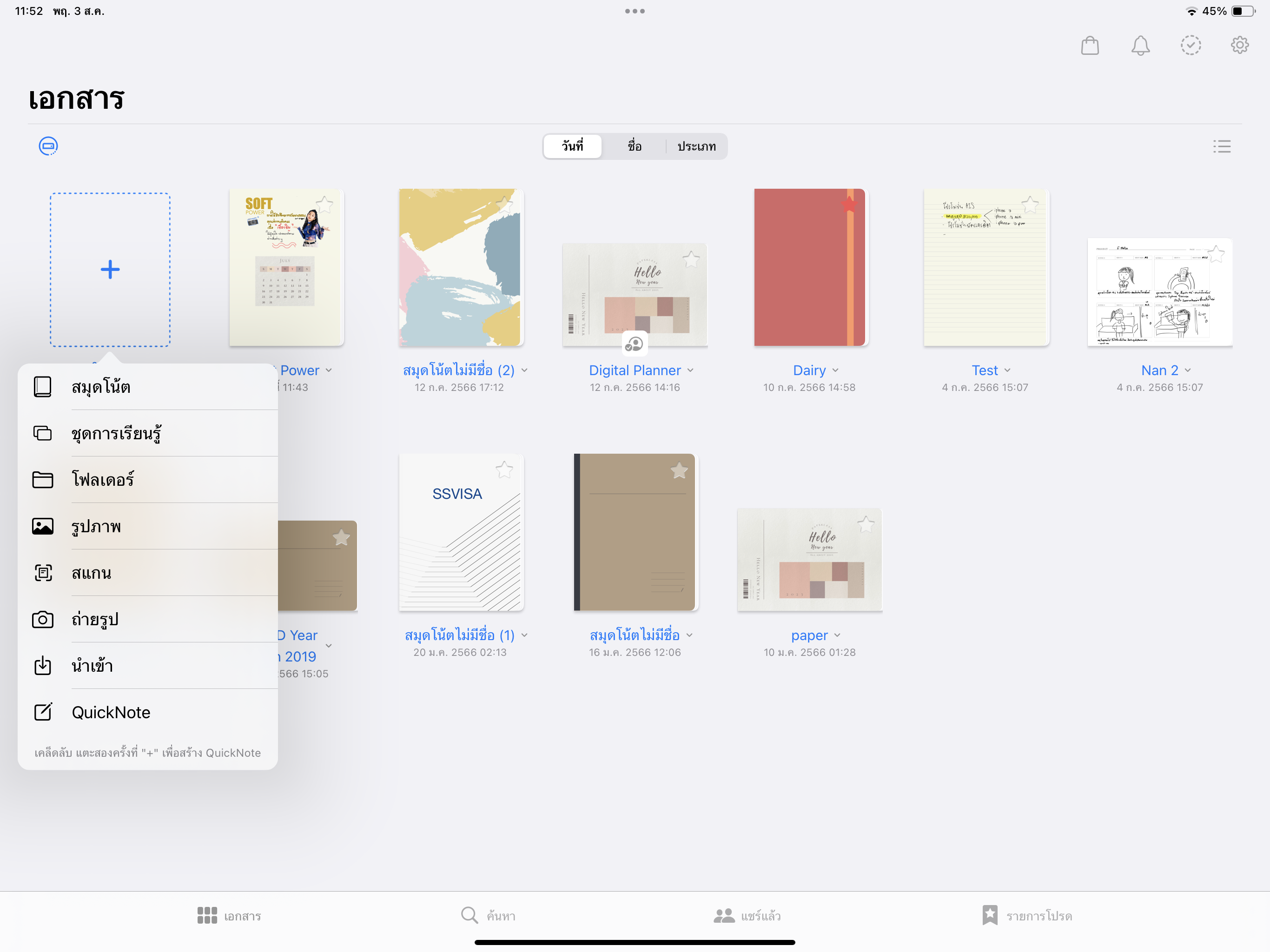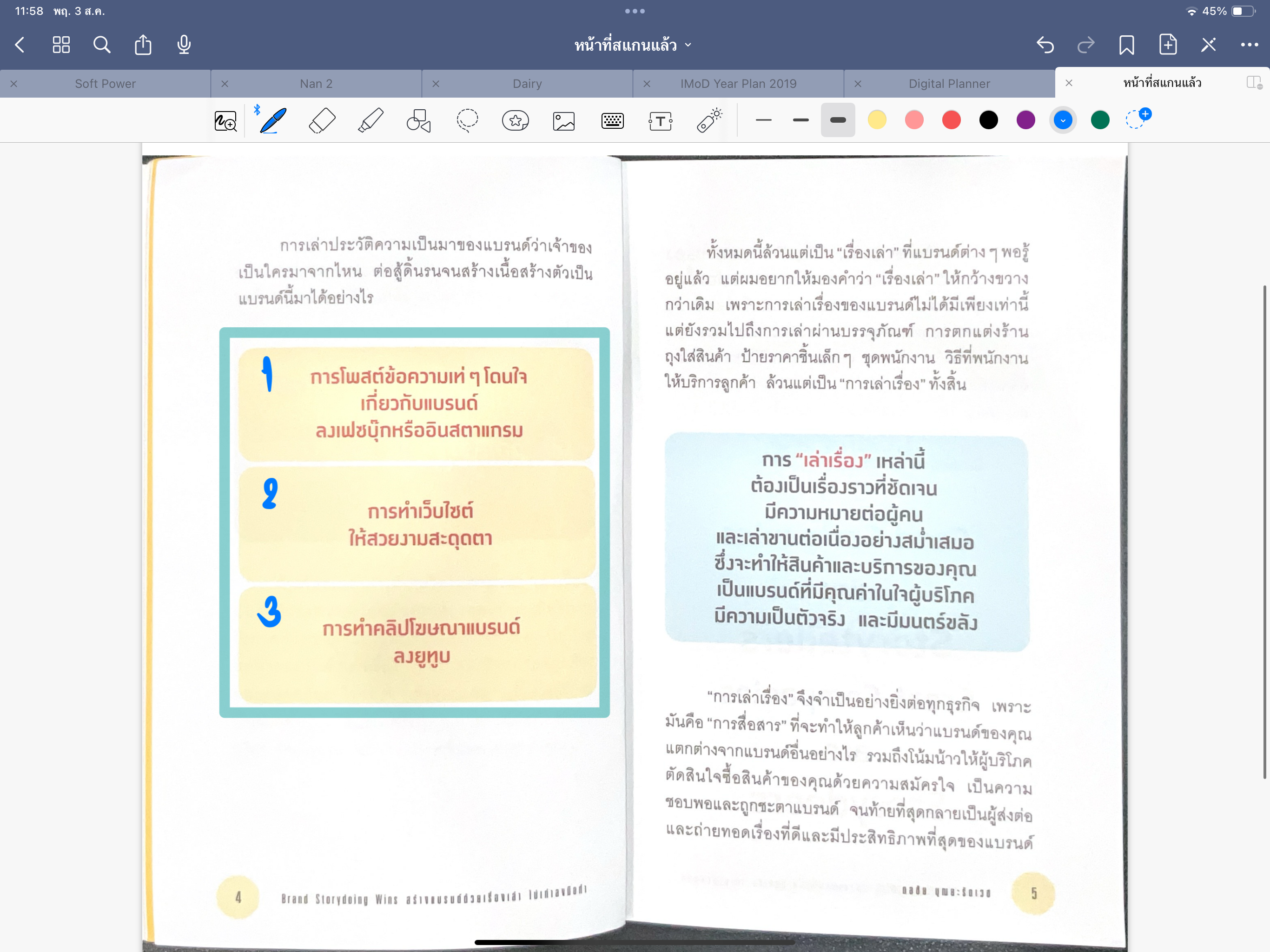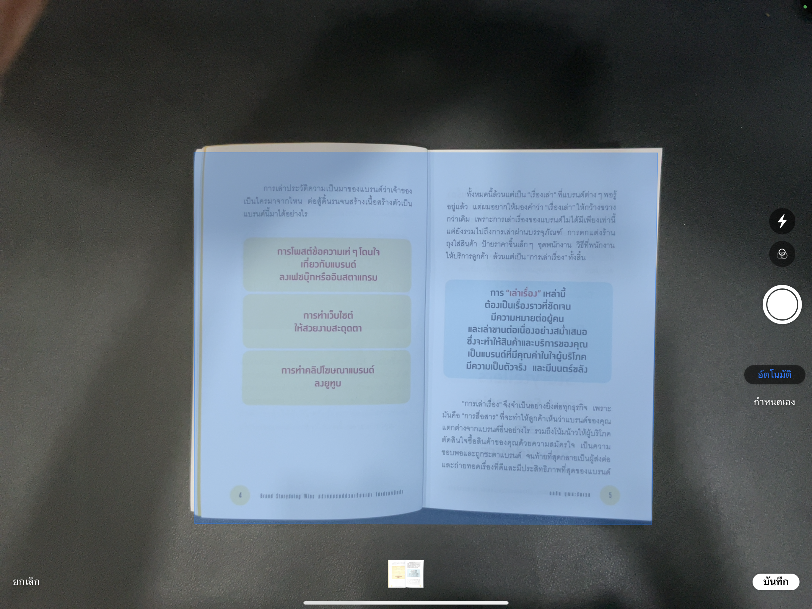 หากมีหนังสือเป็นเล่มแล้วอยากจะช็อตโน้ตหรืดจดไฮไลท์สำคัญ ก็สามารถใช้การสแกนเอกสารเพิ่มเข้ามาได้ แตะที่เครื่องหมายบวก เพิ่มหน้ากระดาษใหม่ > สแกน > จากนั้นก็ไฮไลท์สิ่งสำคัญต่อได้เลย
