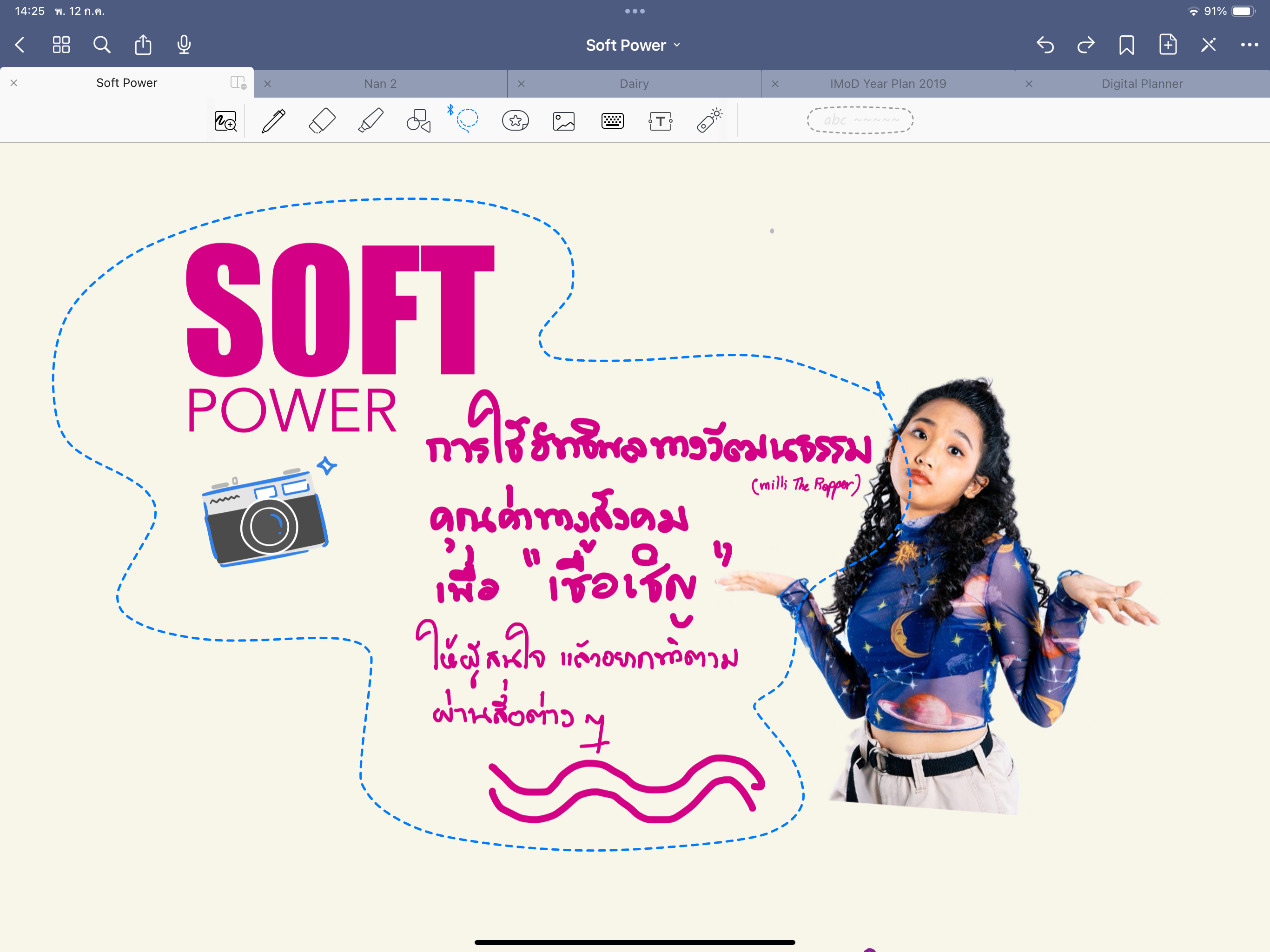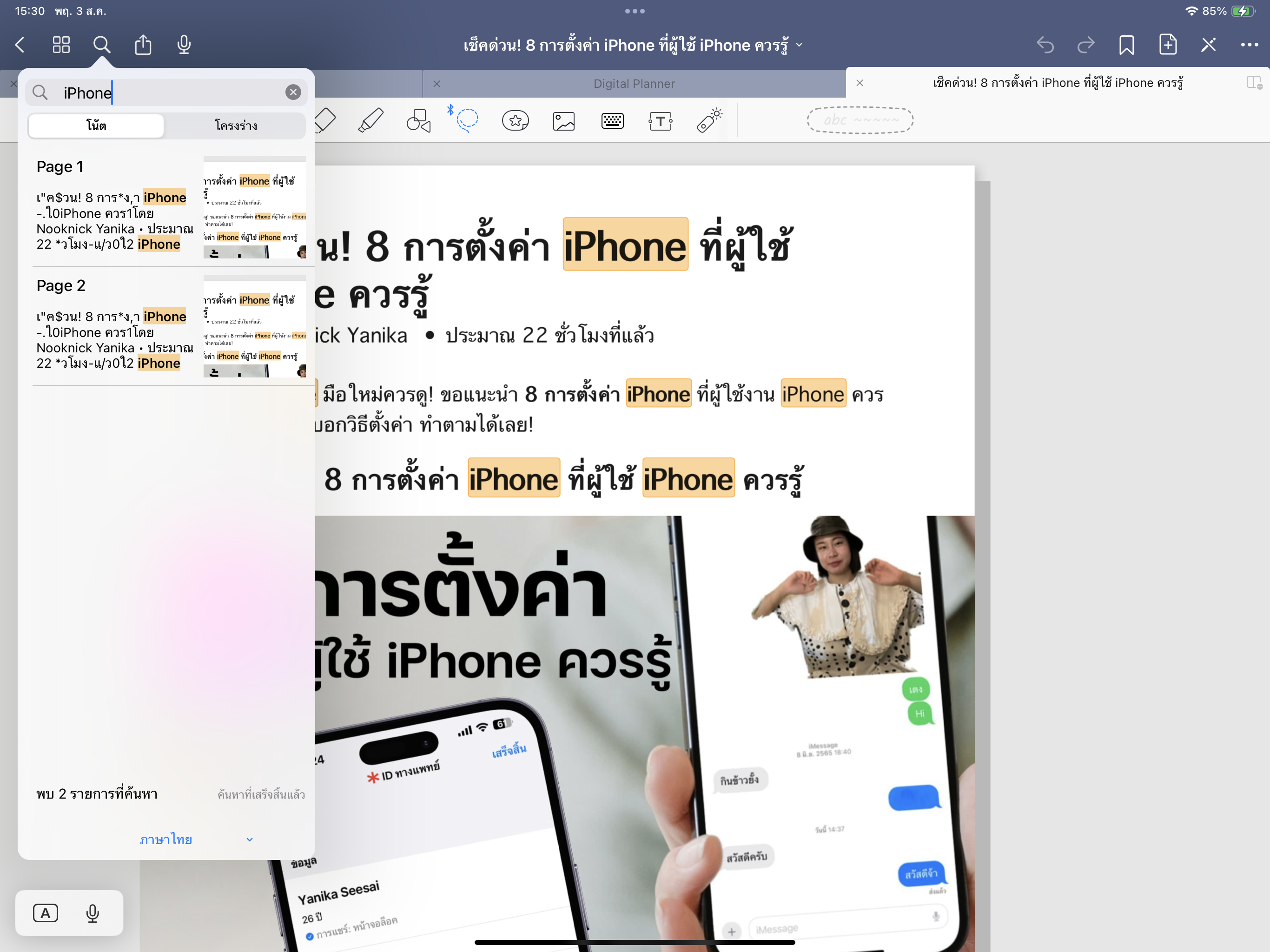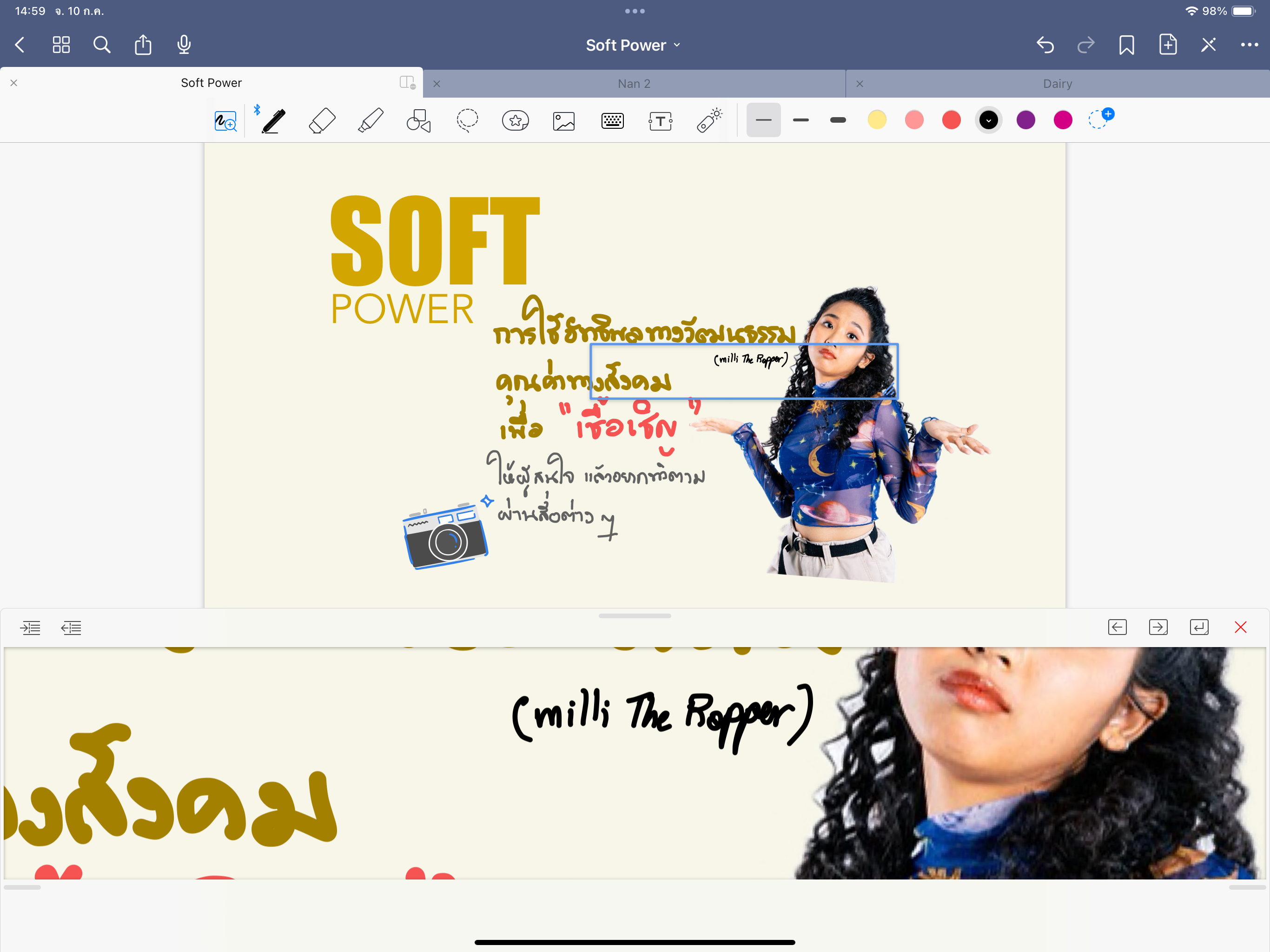 หากมีหนังสือเป็นเล่มแล้วอยากจะช็อตโน้ตหรืดจดไฮไลท์สำคัญ ก็สามารถใช้การสแกนเอกสารเพิ่มเข้ามาได้ แตะที่เครื่องหมายบวก เพิ่มหน้ากระดาษใหม่ > สแกน > จากนั้นก็ไฮไลท์สิ่งสำคัญต่อได้เลย