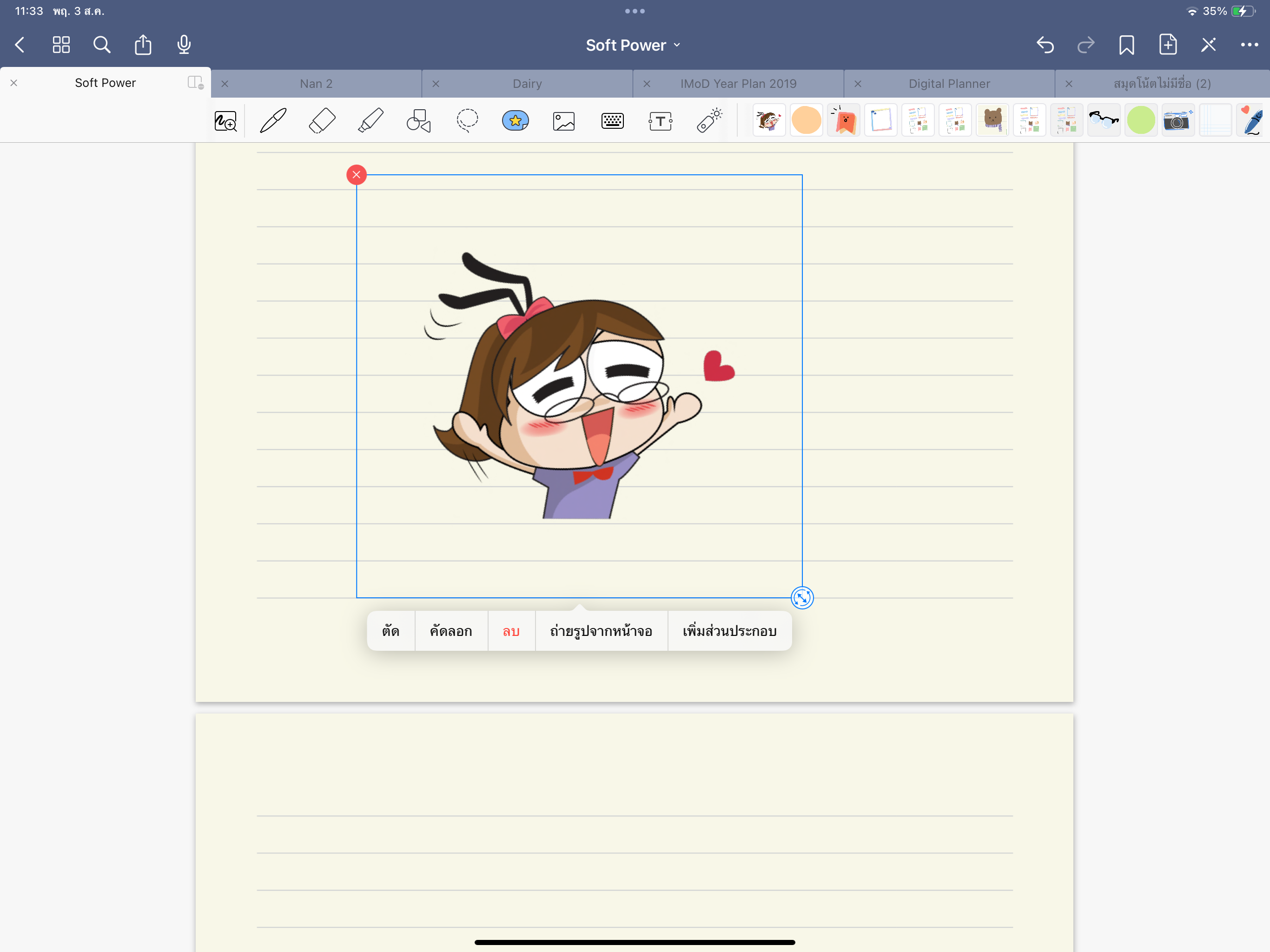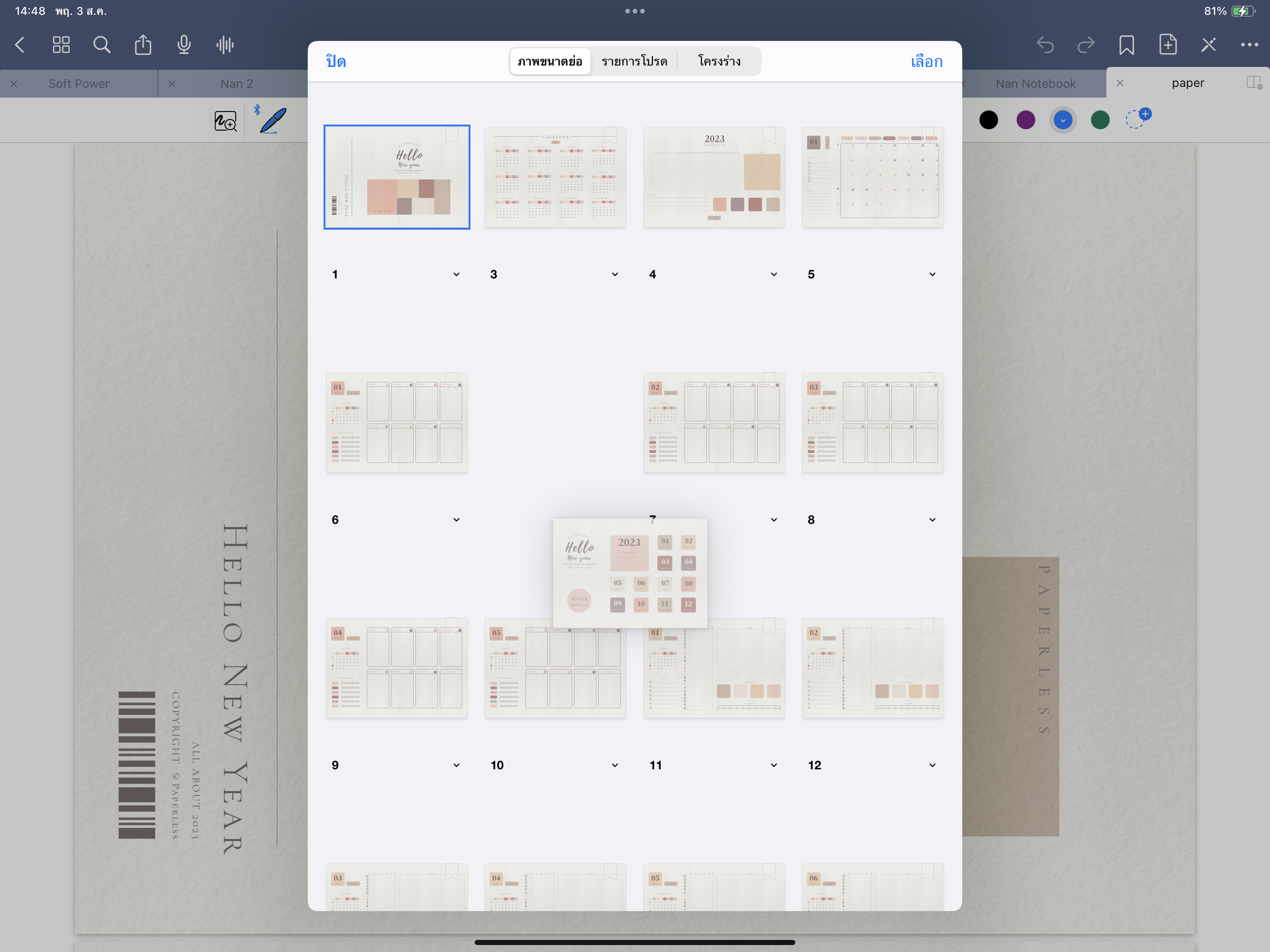 สามารถย้ายตำแหน่งหน้ากระดาษได้ หากต้องการจัดเรียงเนื้อหาใหม่โดยแตะที่ไอคอนหน้ากระดาษ > ลากหน้ากระดาษ แล้วย้ายไปยังตำแหน่งที่ต้องการได้เลย