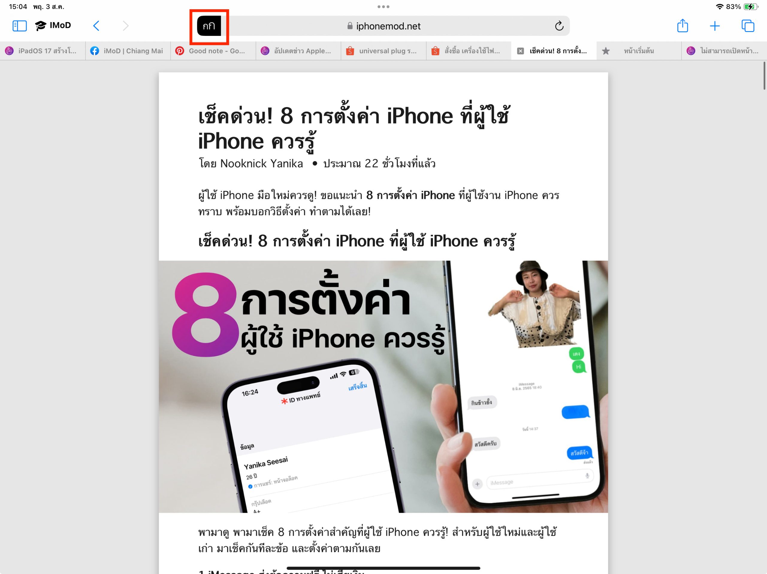 หากต้องการจดโน้ตประเด็นสำคัญบนเนื้อหาในเว็บไซต์ก็สามารถใช้วิธีแคปหน้าเพจทั้งหมดแล้วส่งออกไปยังแอป GoodNotes ได้ โดยไปที่หน้าเว็บไซต์ > เลือกตัวอักษร กก > แสดงตัวอ่าน > แคปรูป > เลือก “ทั้งหมด”