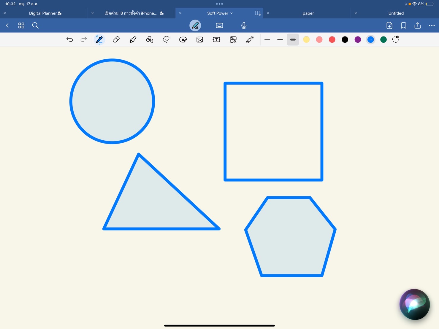ใน GoodNotes สามารถสร้างรูปร่างแบบสมมาตรได้เพียงแค่แตะค้างไว้ ไม่ว่าจะเป็น วงกลม สี่เหลี่ยม สามเหลี่ยม และอื่นๆ