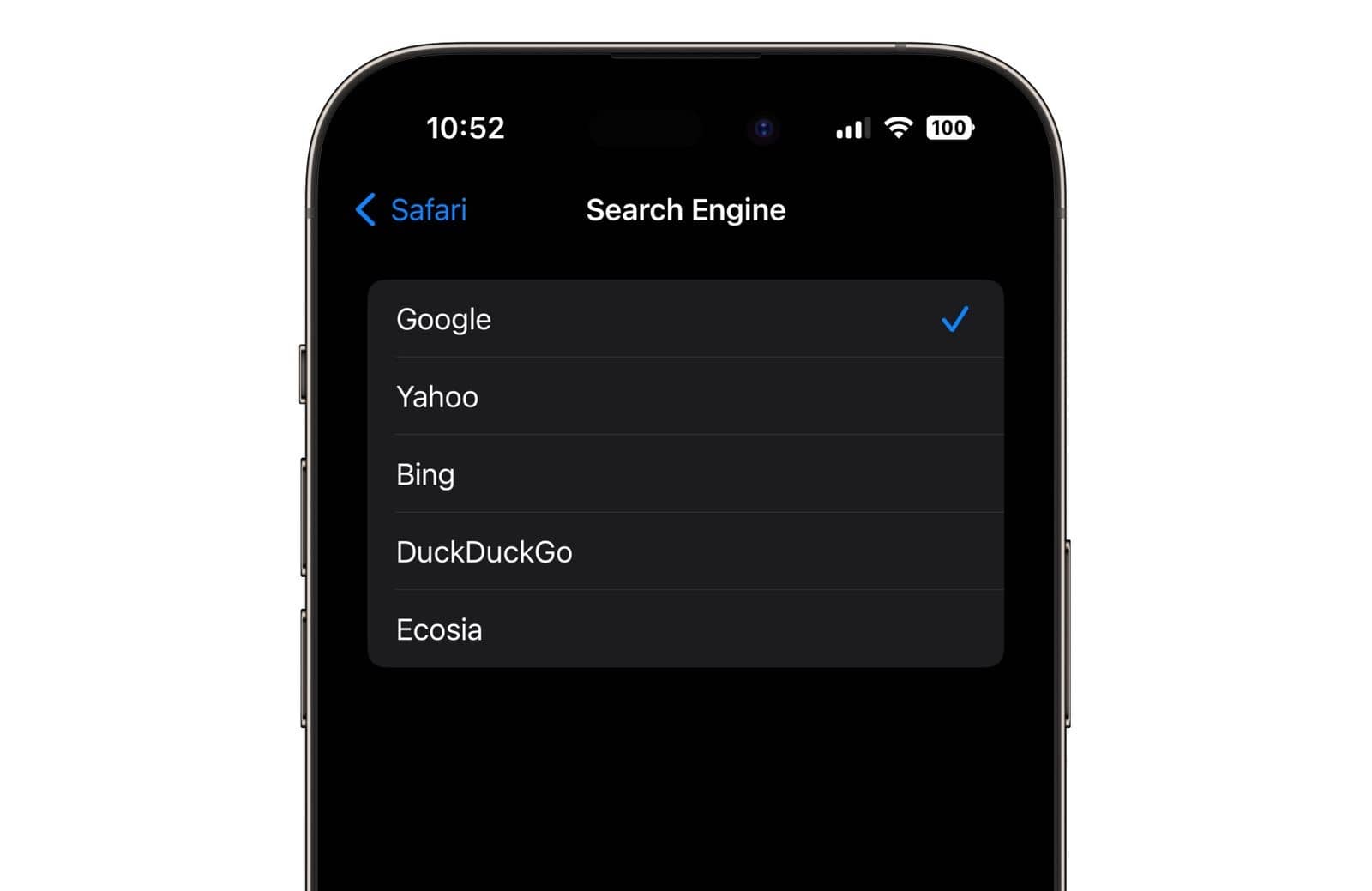 ถึงแม้ Google จะเป็นเครื่องมือค้นหาหลักสำหรับอุปกรณ์ Apple, แต่ผู้ใช้สามารถเลือกเปลี่ยนเป็นอย่างอื่นได้ในการตั้งค่า เช่น Yahoo, Bing, DuckDuckGo หรือ Ecosia แต่เนื่องจาก Google เป็นเครื่องมือค้นหาหลักที่ถูกตั้งค่ามาตั้งแต่ทีแรก จึงทำให้มีประเด็นการผูกขาดเกิดขึ้นนั่นเอง