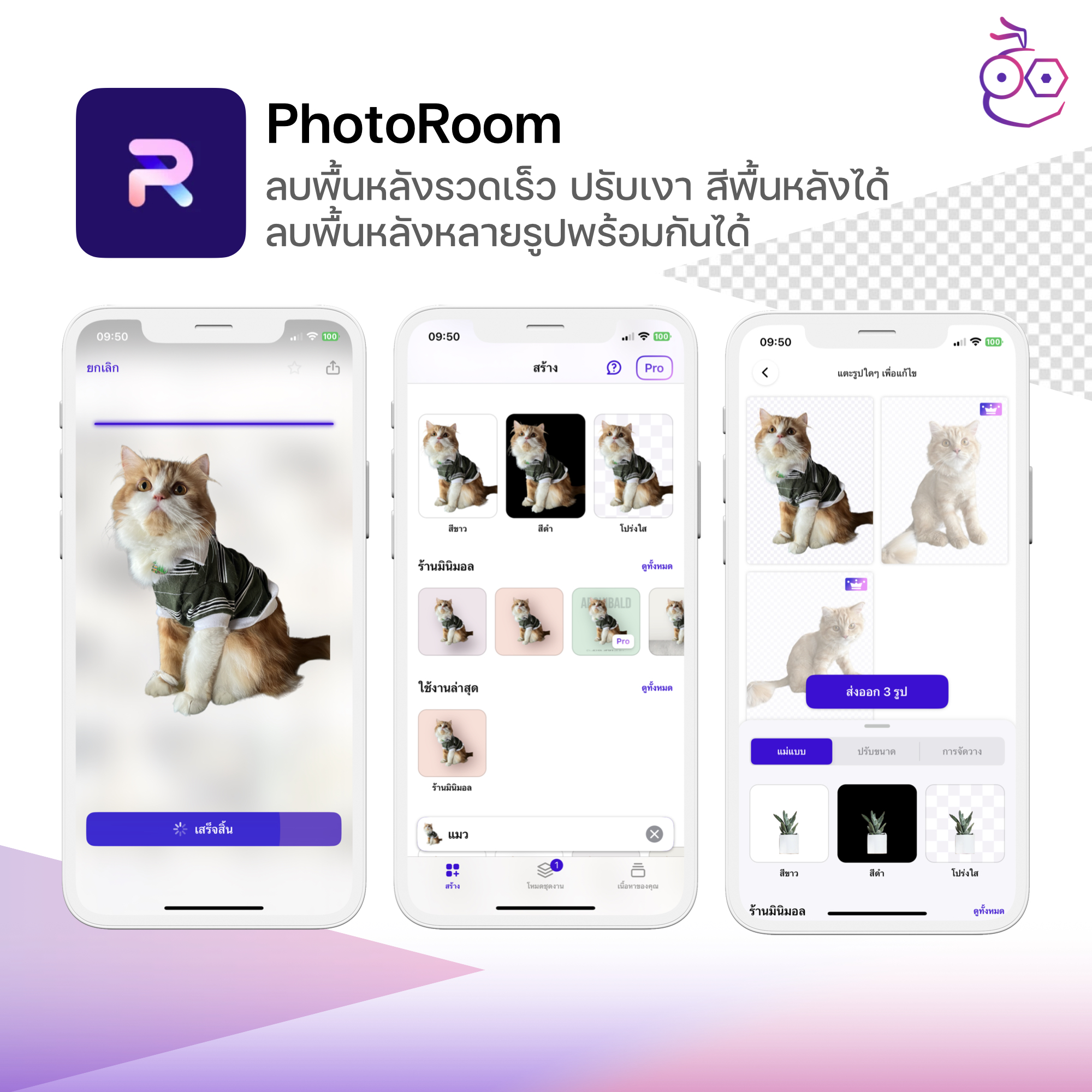 แอป PhotoRoom ลบพื้นหลังยอดนิยม ที่ลบได้ค่อนข้างเนียนและรวดเร็ว รองรับการลบพื้นหลังพร้อมกันหลายรูป (สำหรับ Pro) มีพื้นหลังสวย ๆ ให้เลือกปรับแต่งเยอะมากมาย ดูทันสมัย เหมาะสำหรับการทำภาพสินค้า [ดาวน์โหลดแอปที่นี่]