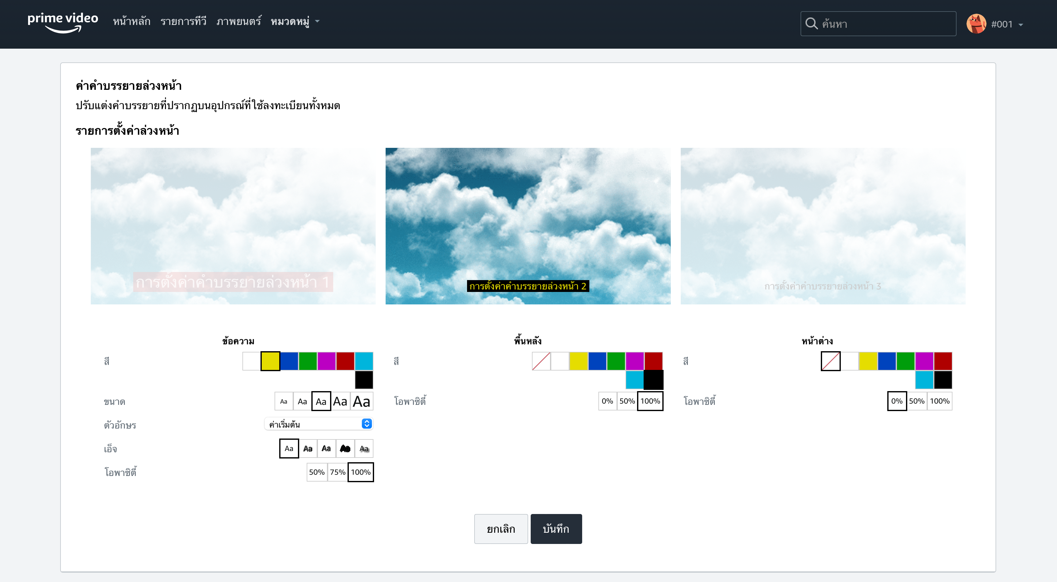 3. สามารถตั้งค่า Preset ของคำบรรยายได้