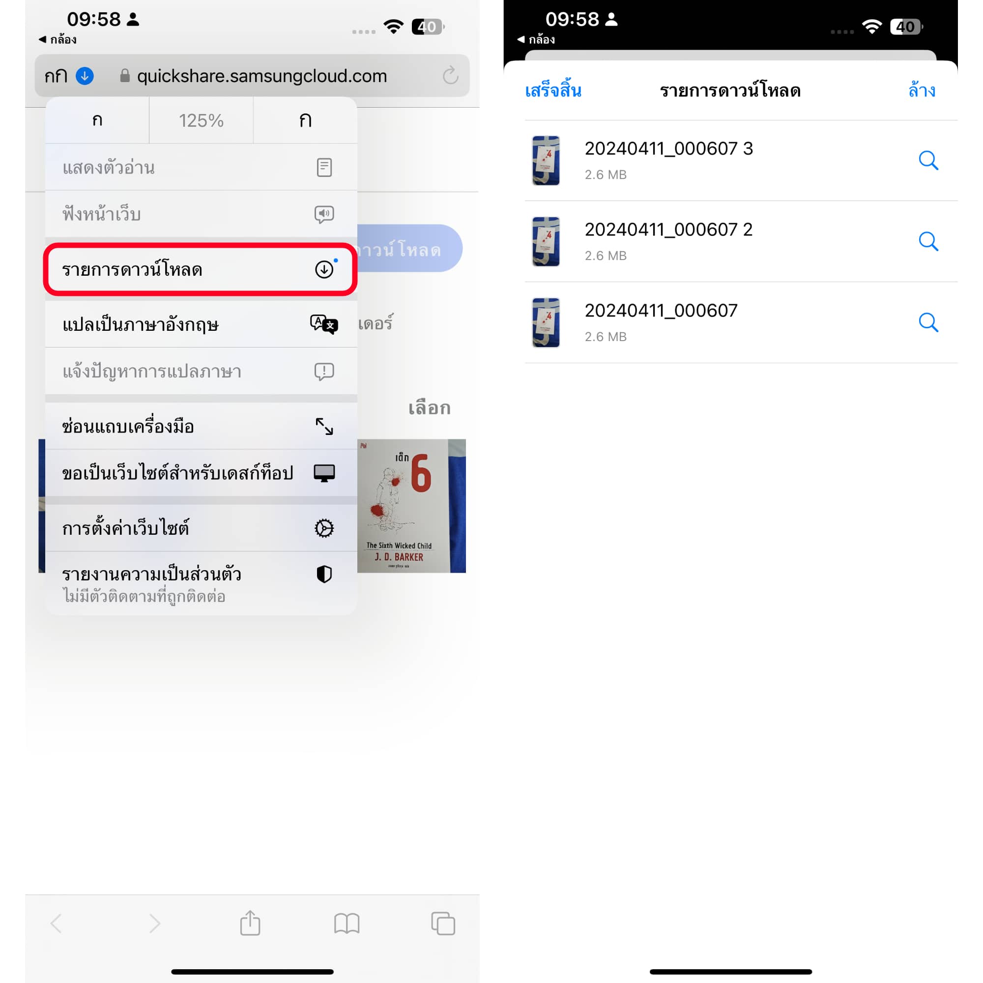 กด รายการดาวน์โหลด > เลือกรูปที่ต้องการ