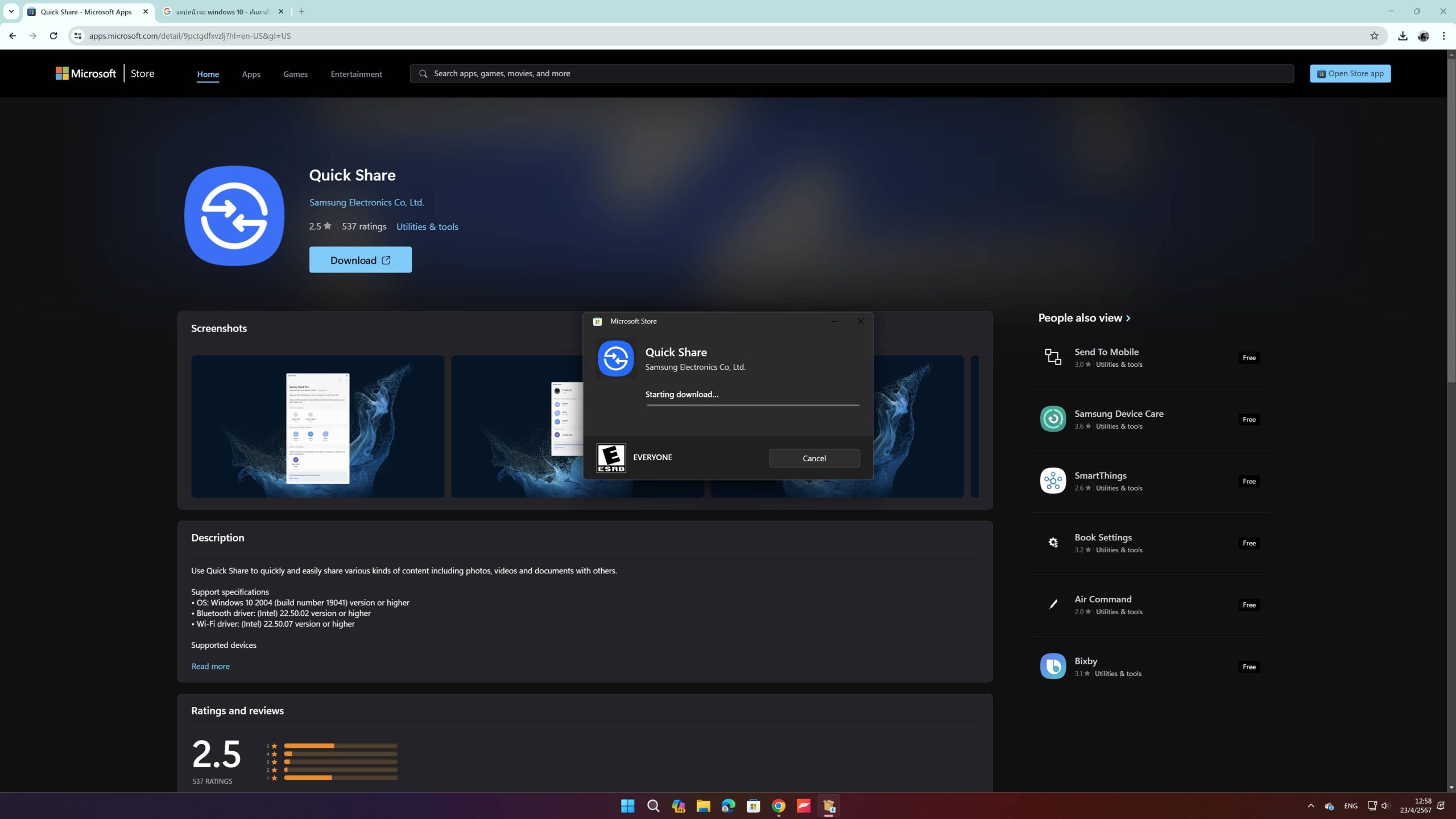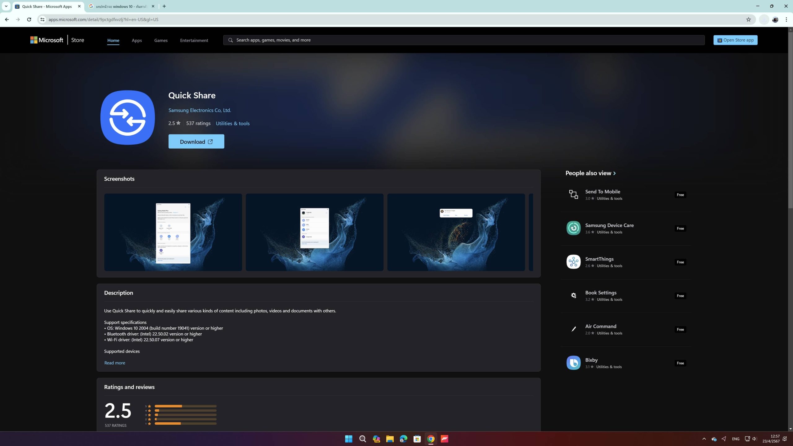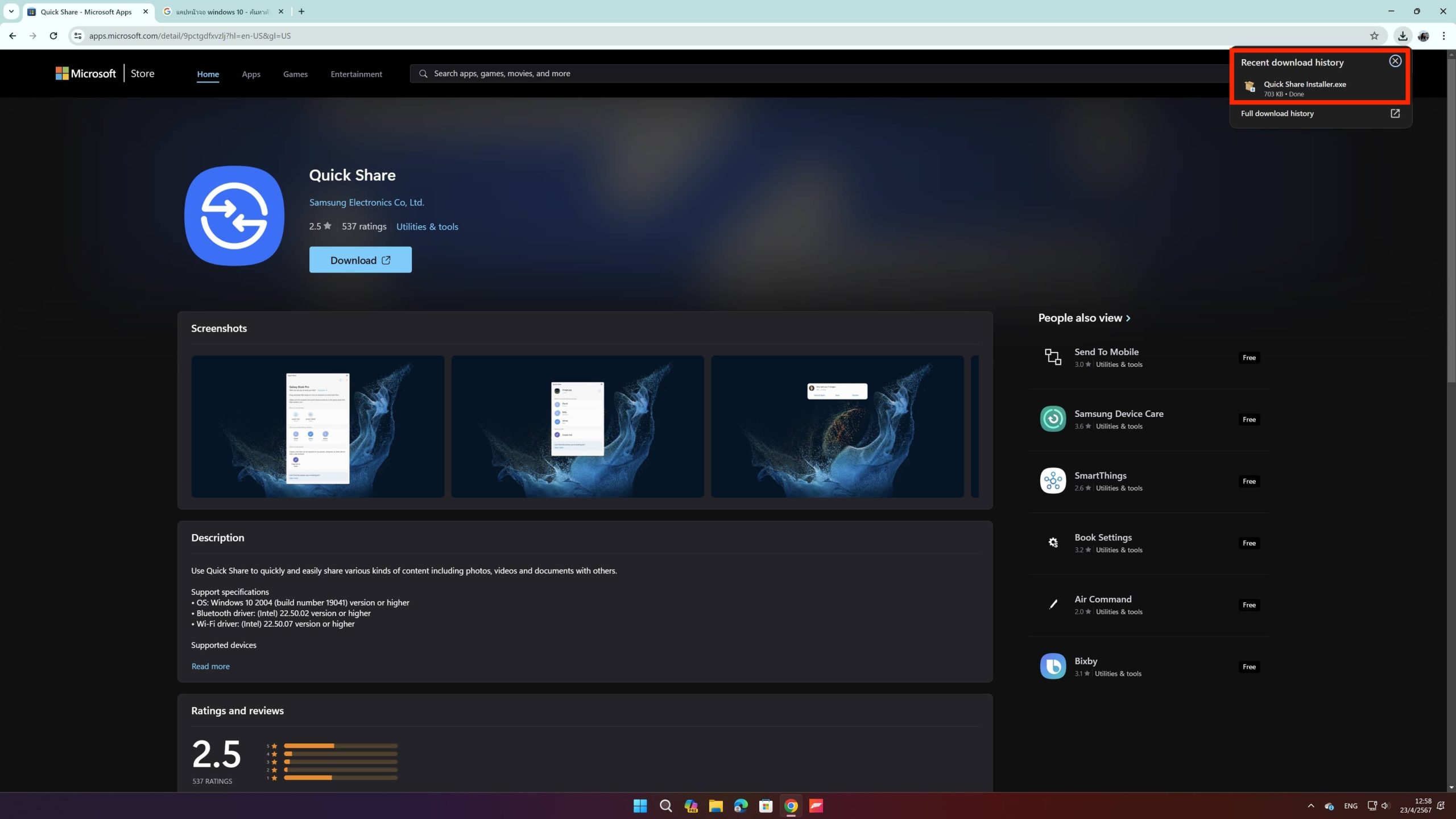 ให้เรามาที่เว็บ Microsoft/Quick Share หรือจะค้นในแอป Microsoft ว่า “Quick Share” ก็ได้ จากนั้นให้กด “Download” ได้เลย