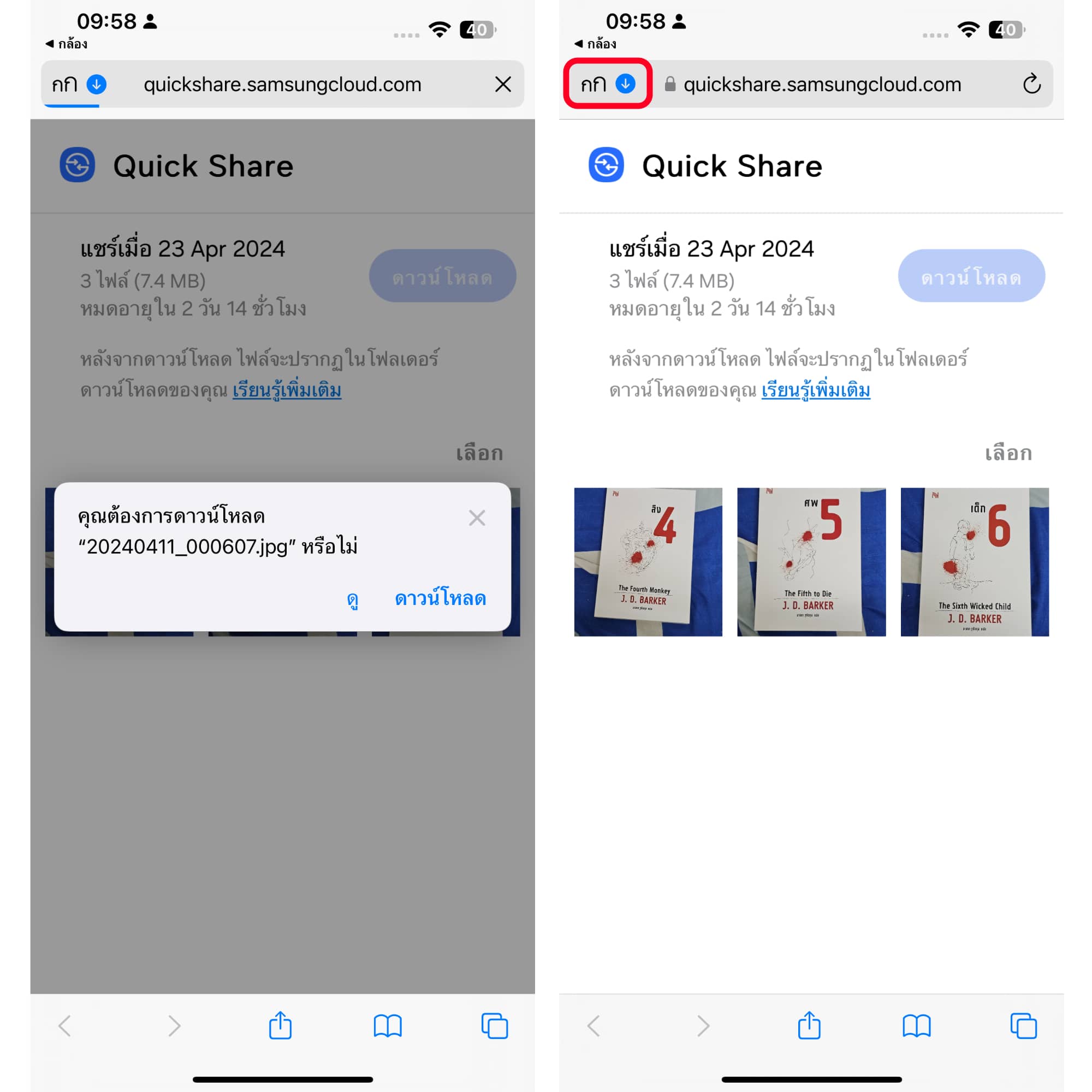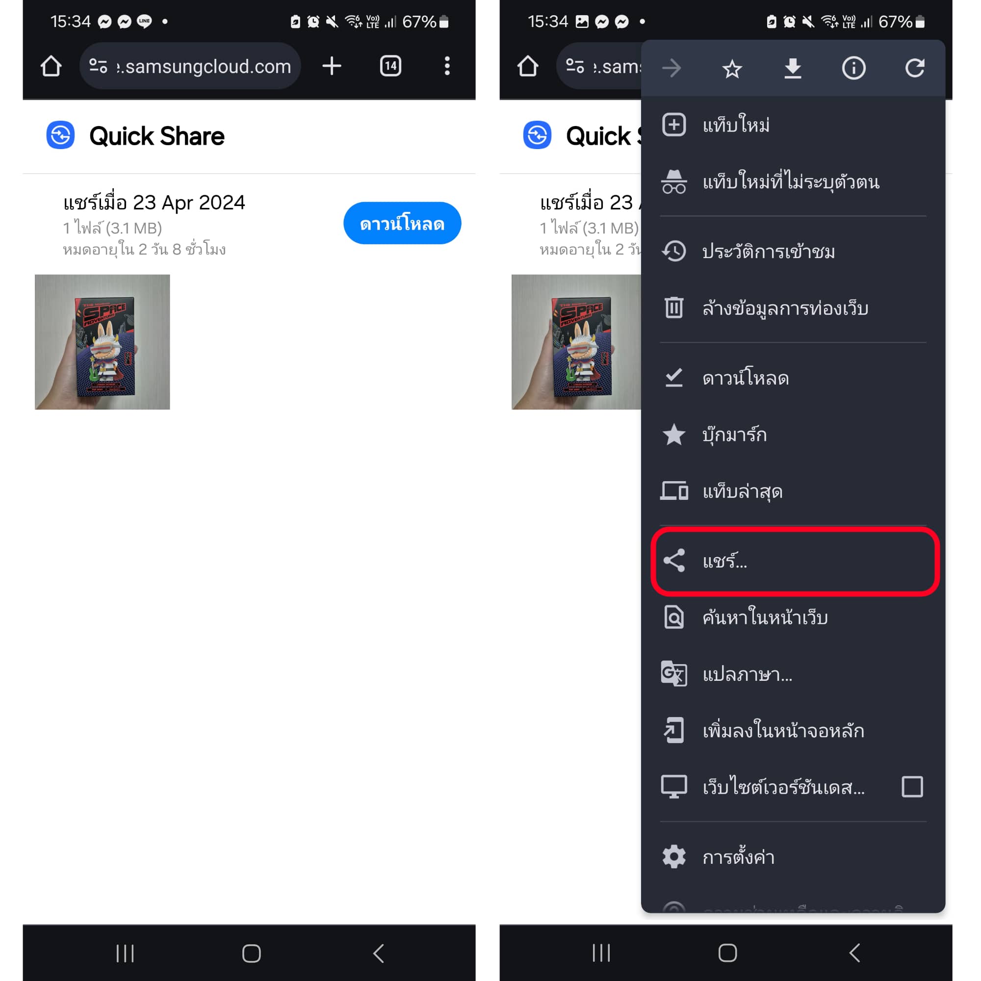 แค่นี้เราก็จะสามารถโหลดไฟล์ที่ถูกแชร์มาจาก Samsung ได้แล้ว