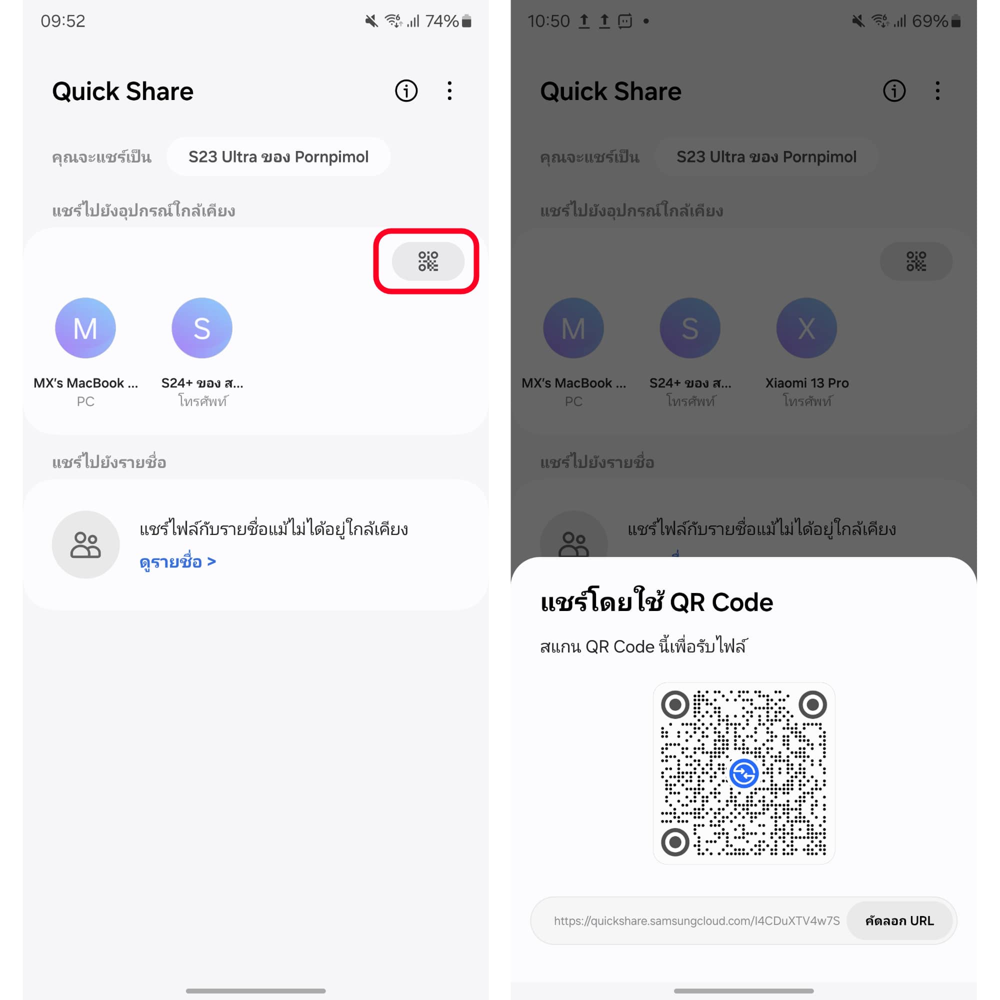 หรือจะแชร์เป็น QR Code ให้สแกนหรือส่งเป็นลิงก์ก็ทำได้นะ