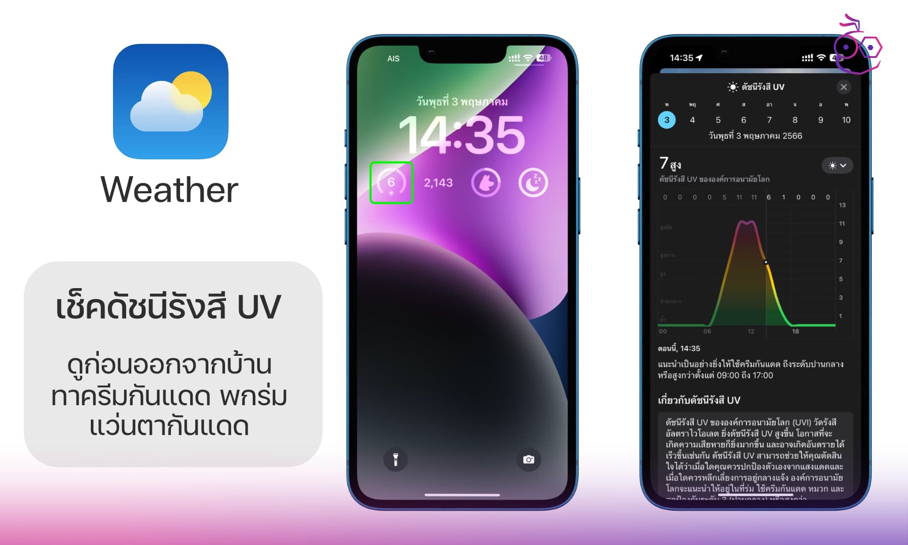 วิดเจ็ตสภาพอากาศมีให้เลือกใช้หลายแบบ แต่ที่อยากแนะนำคือ วิดเจ็ตแสดงค่าดัชนีรังสี UV (UV Index) เพราะแสงแดดสามารถทำลายผิวและดวงตาของเราได้