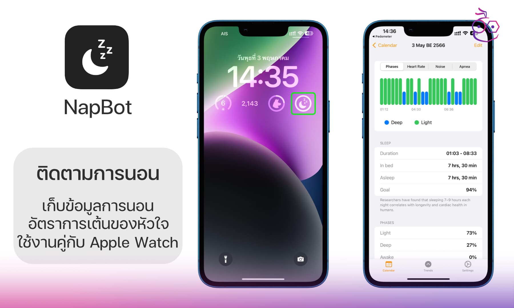ดาวน์โหลด : https://apps.apple.com/us/app/napbot-auto-sleep-tracker/id1476436116