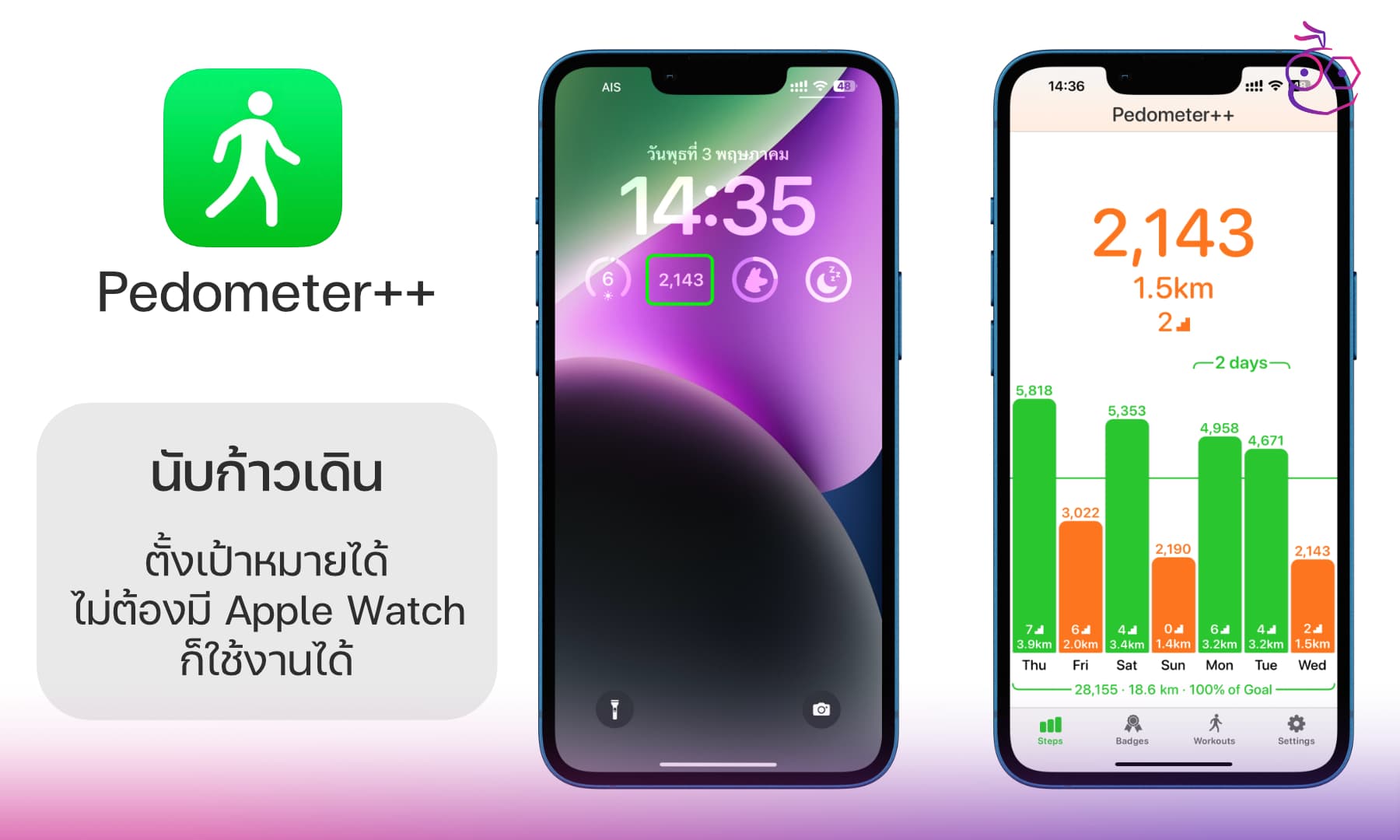 ดาวน์โหลด : https://apps.apple.com/us/app/pedometer/id712286167
