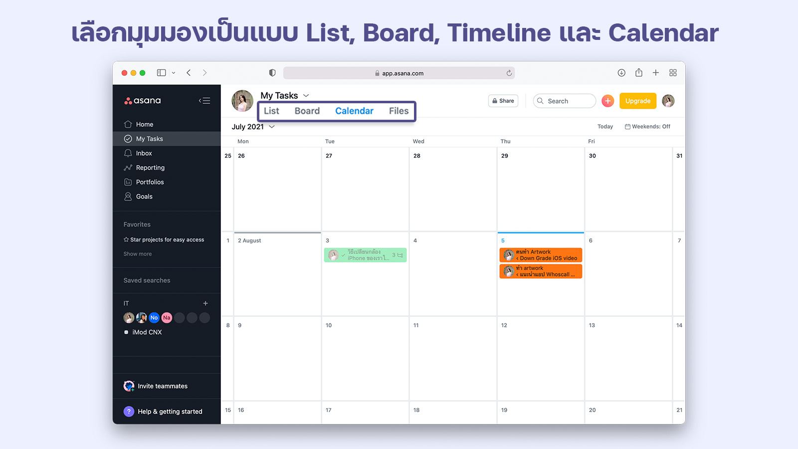และสามารถเลือกมุมมองเป็นแบบ List, Board, Timeline, แบบ Calendar