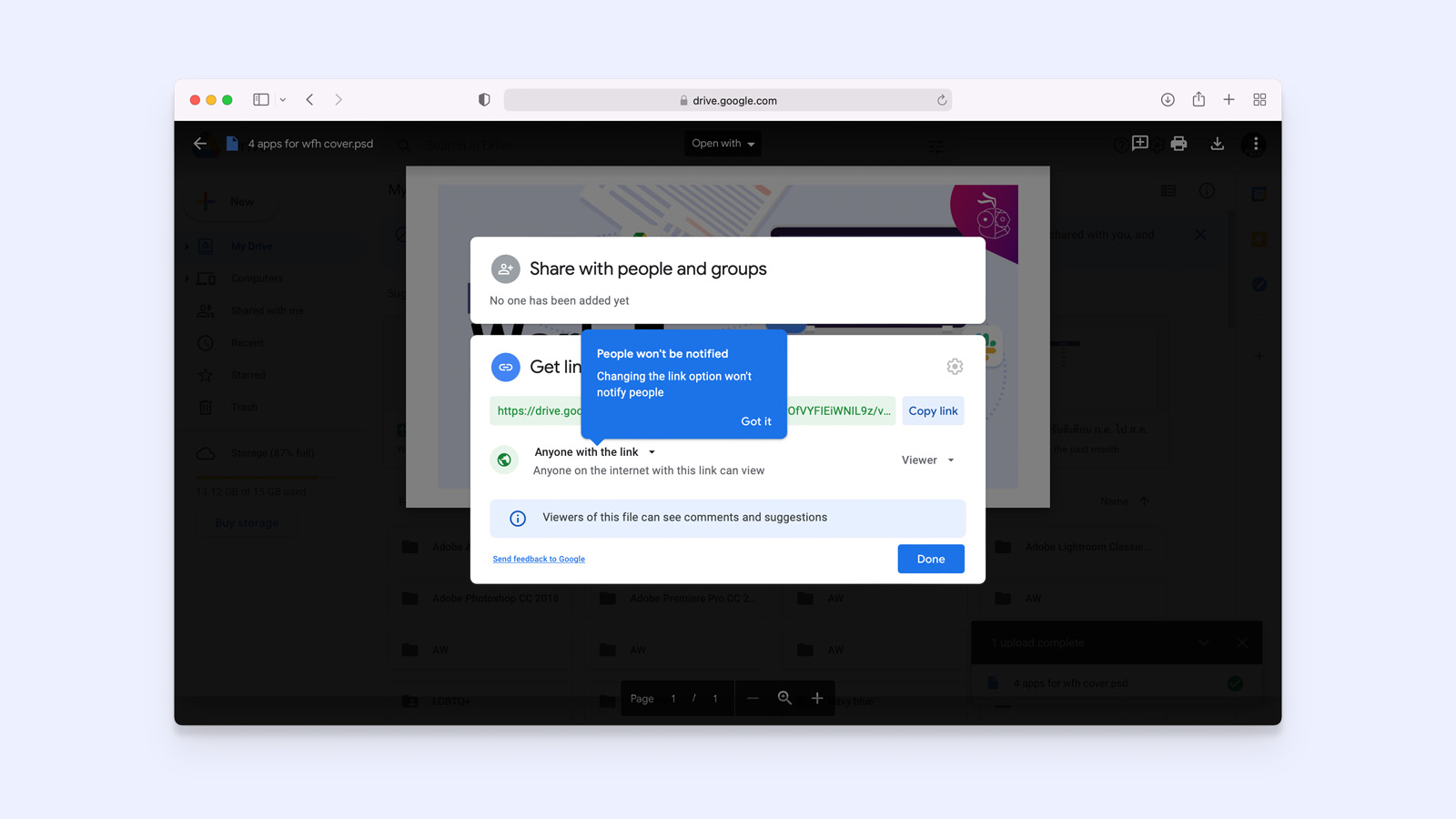 แชร์ไฟล์ให้กับเพื่อนร่วมทีมหรือลูกค้า การทำงานจากที่บ้านก็สามารถส่งงานให้กันได้ง่าย เพียงอัพโหลดแล้วแชร์ลิงค์ส่งต่อให้กันได้เลย