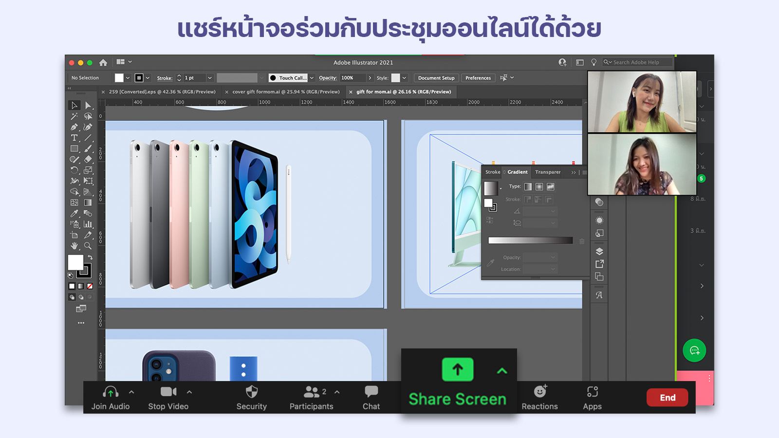 และเวลาที่เราต้องการนำเสนองานสามารถแชร์หน้าจอของเราได้ด้วย