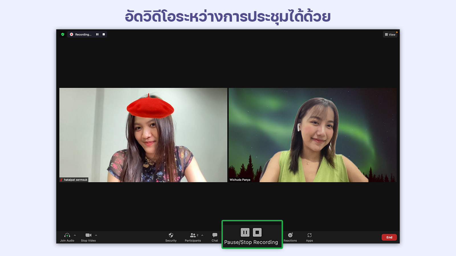 นอกจากนี้เรายังสามารถอัดวิดีโอระหว่างการประชุมได้ด้วย เหมาะมาก ๆ กับคนที่ต้องการทวนว่าประชุมอะไรไปบ้าง
