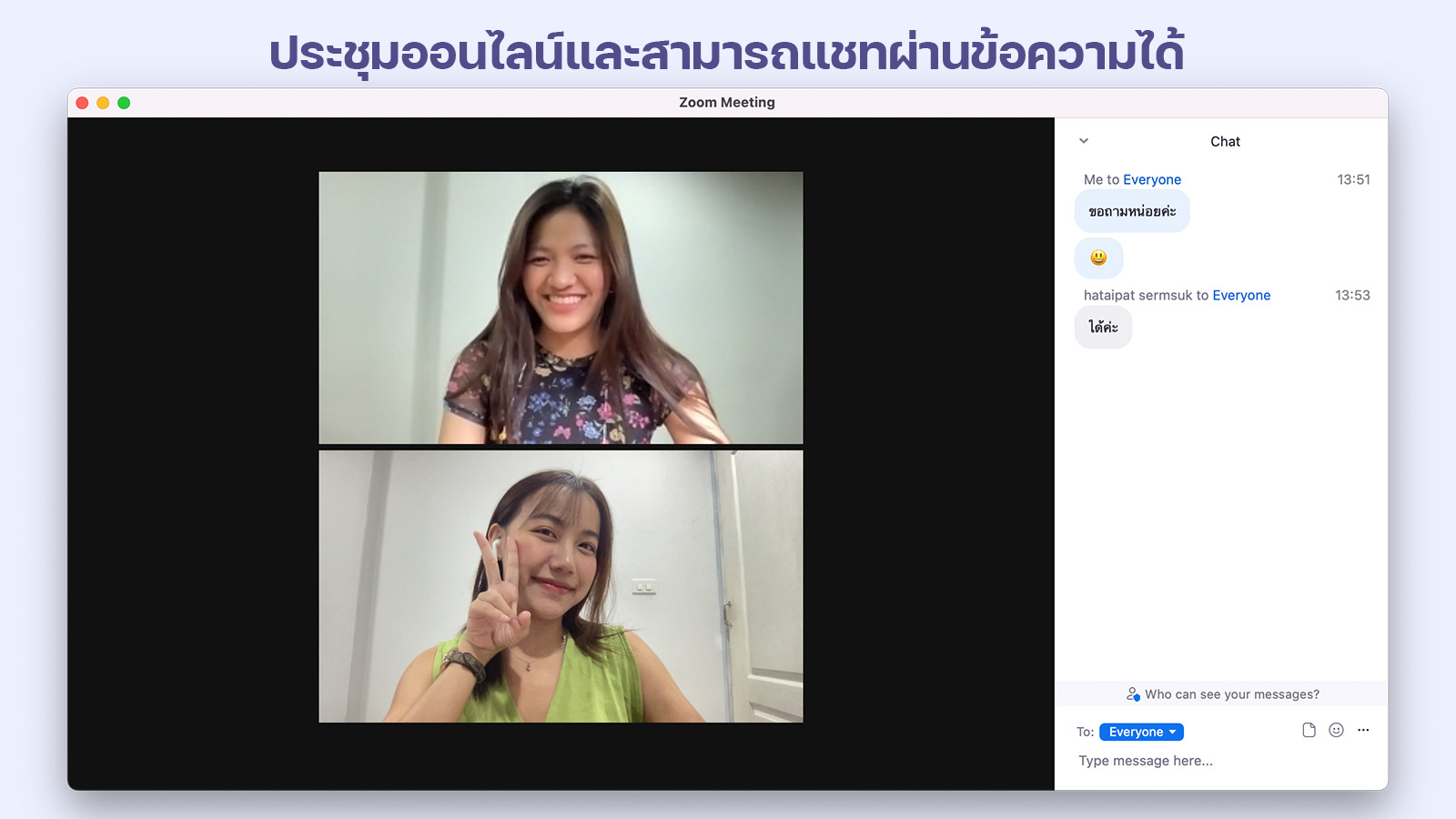 ในบางครั้งการสื่อสารเพียงแค่แชทอาจจะไม่เพียงพอต่อการอธิบายบางอย่าง การพูดคุยแบบเห็นหน้าหรือวิดีโอคอลจึงเป็นคำตอบนั่นก็คือแอป Zoom ที่เป็นแพลตฟอร์มการประชุมออนไลน์ มีฟังก์ชันการใช้งานทั้งการประชุมออนไลน์และสามารถแชทผ่านข้อความได้